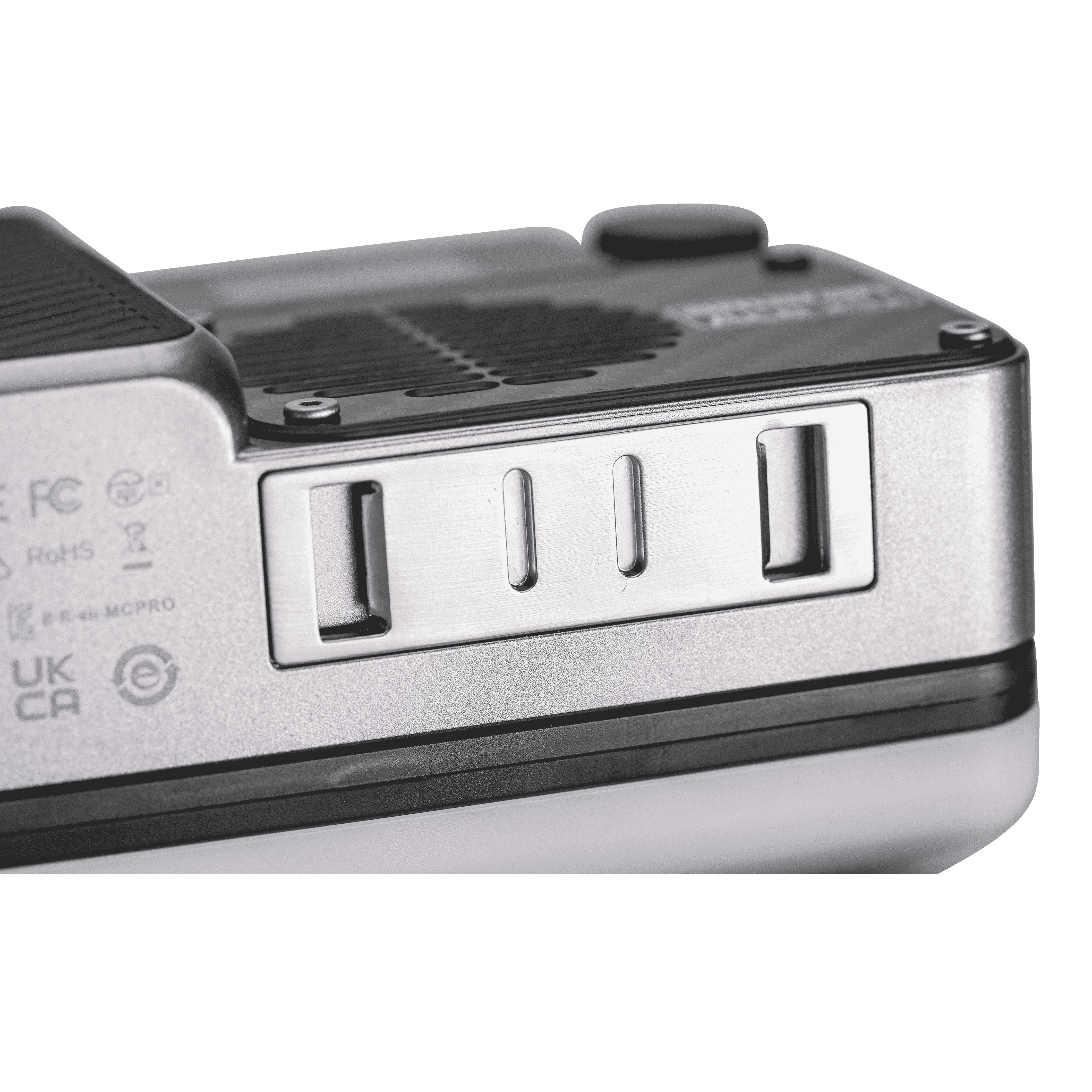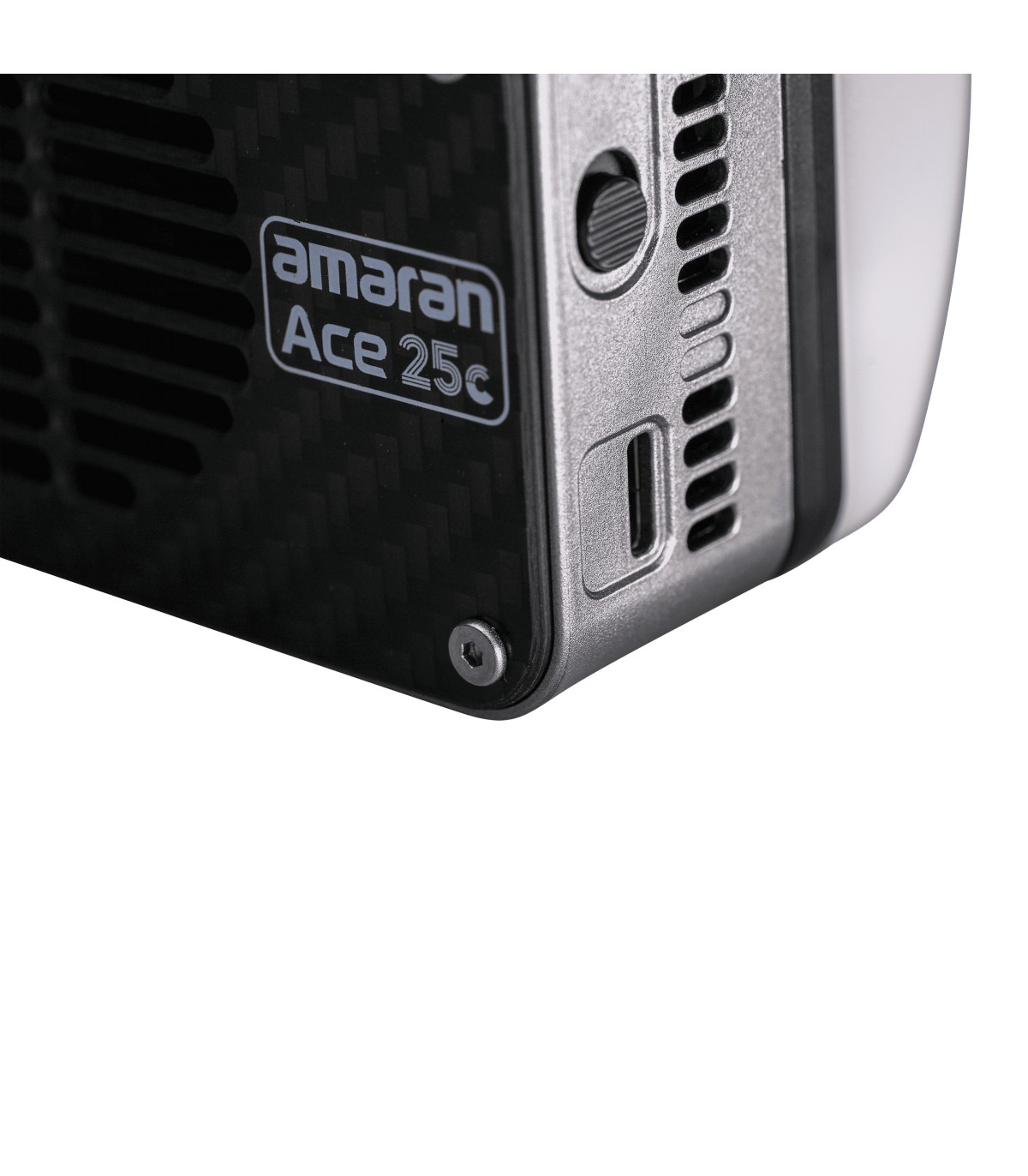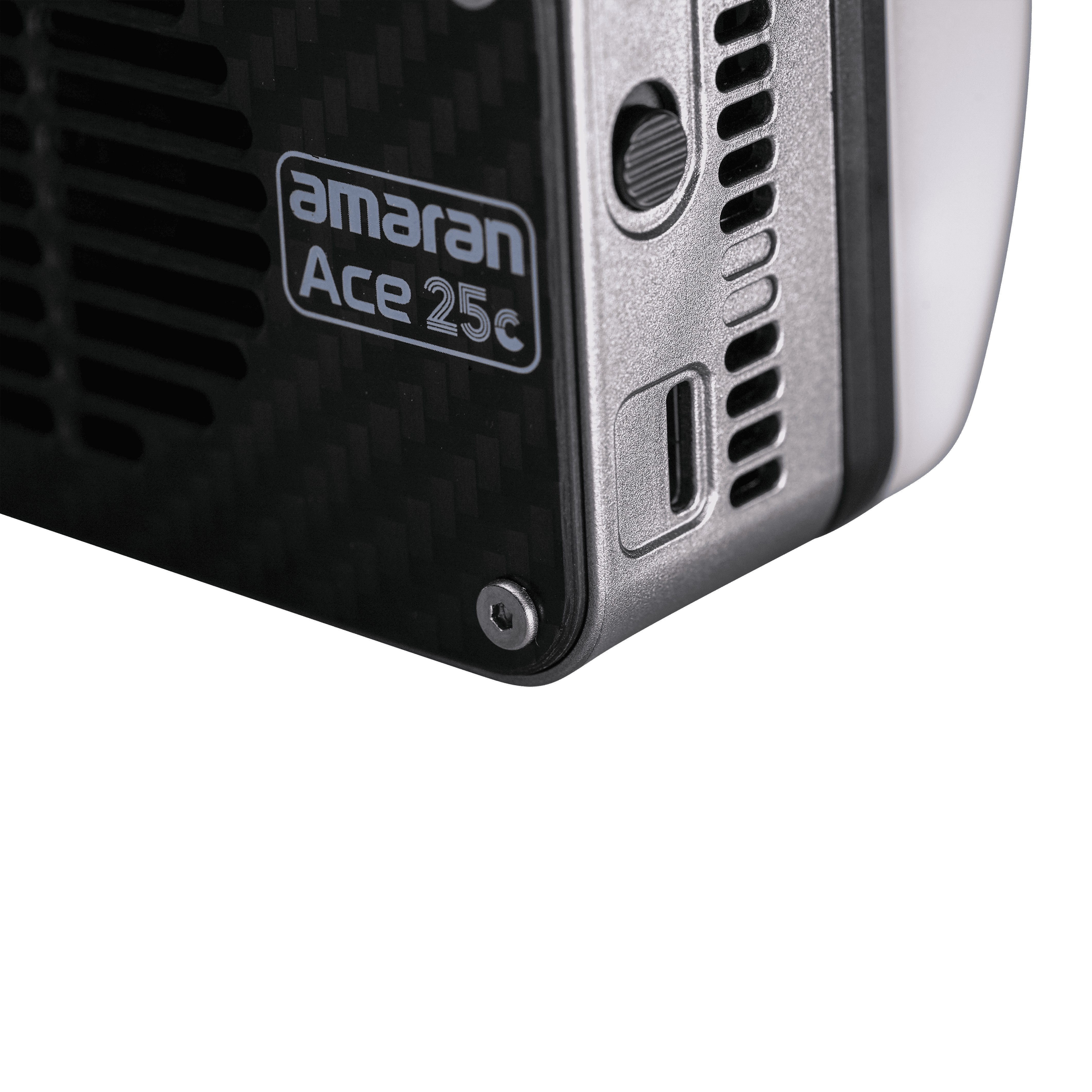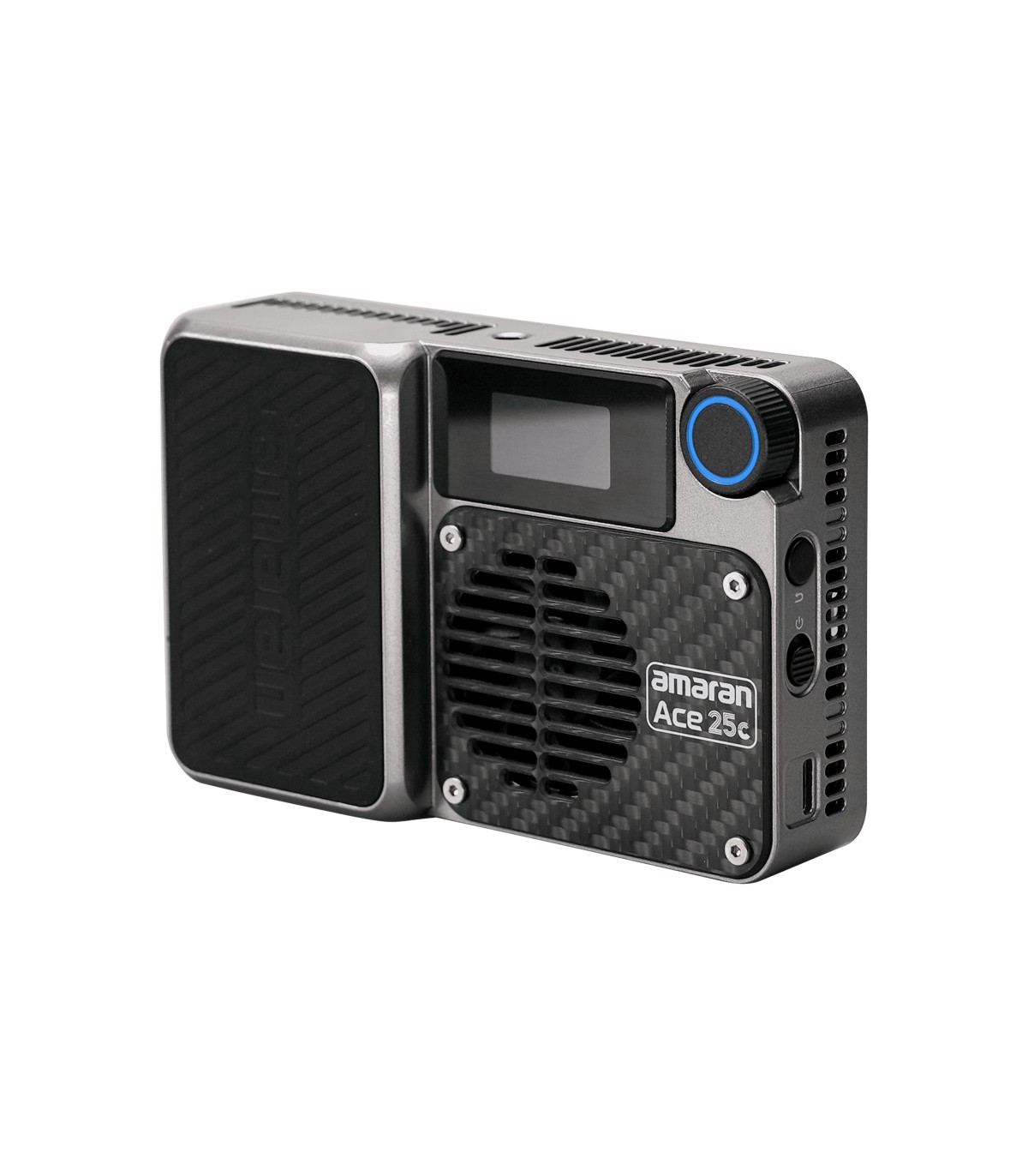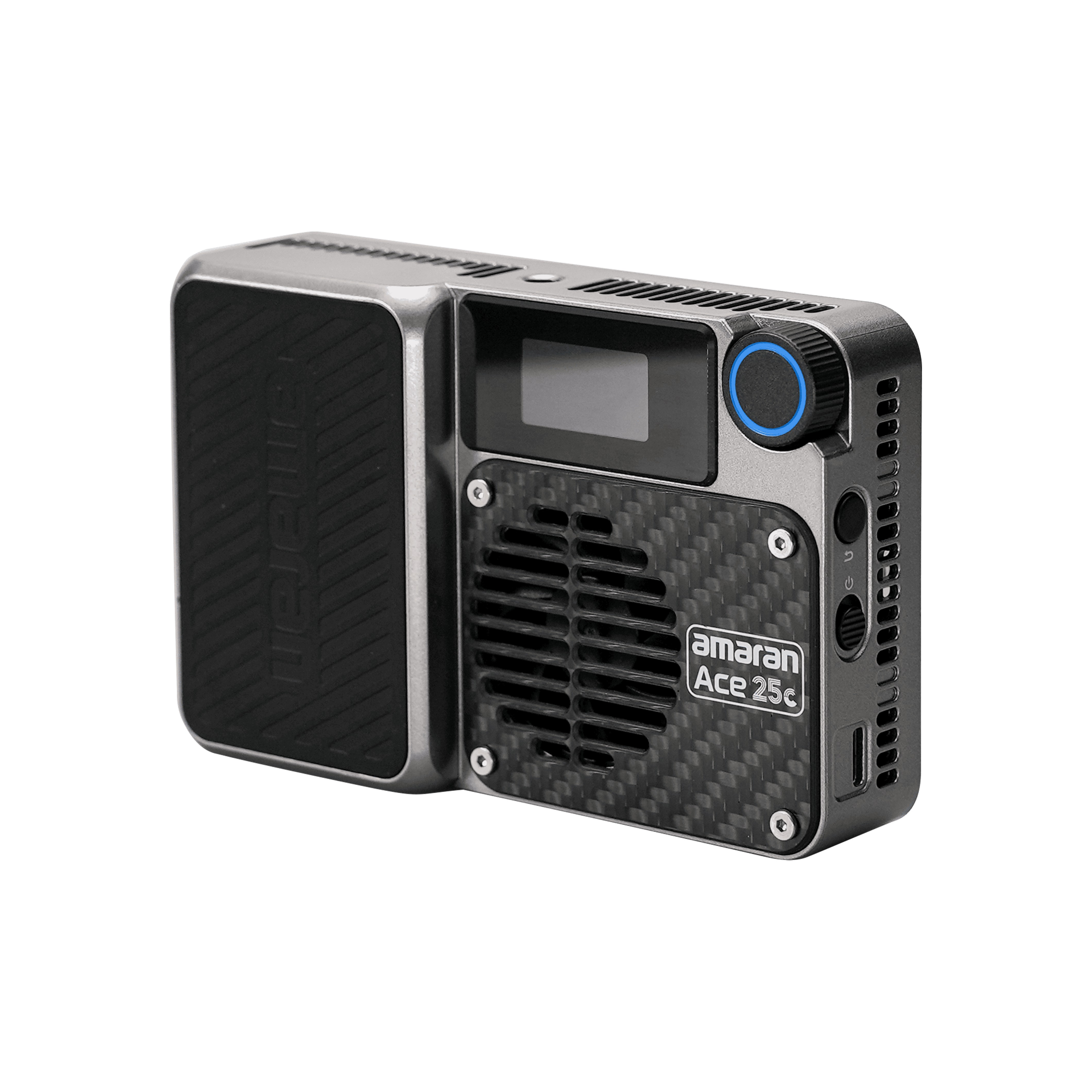 Panel mini Amaran Ace 25c de 25W (32W en Boost Mode), LED matricial RGBWW 2.300K a 10.000K (con ajuste verde-magenta), en color plata. Softlight con sombra suave, y con el difusor dome sombra super suave. Modos de trabajo: CCT, HSI y efectos.