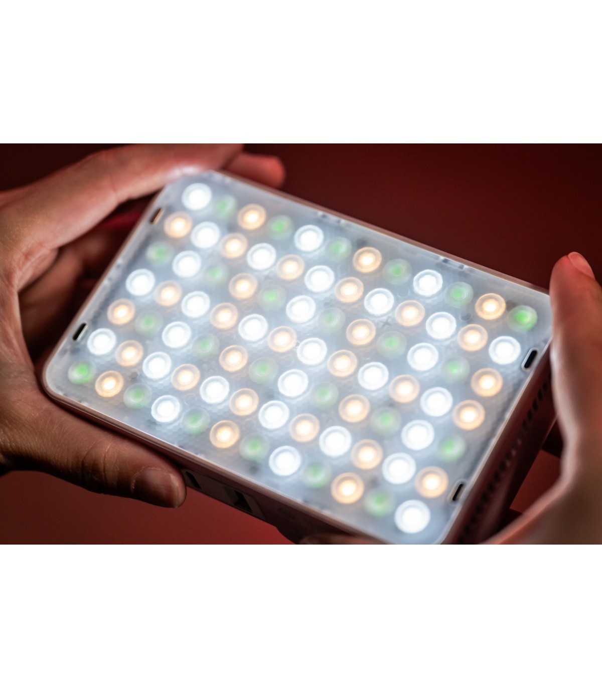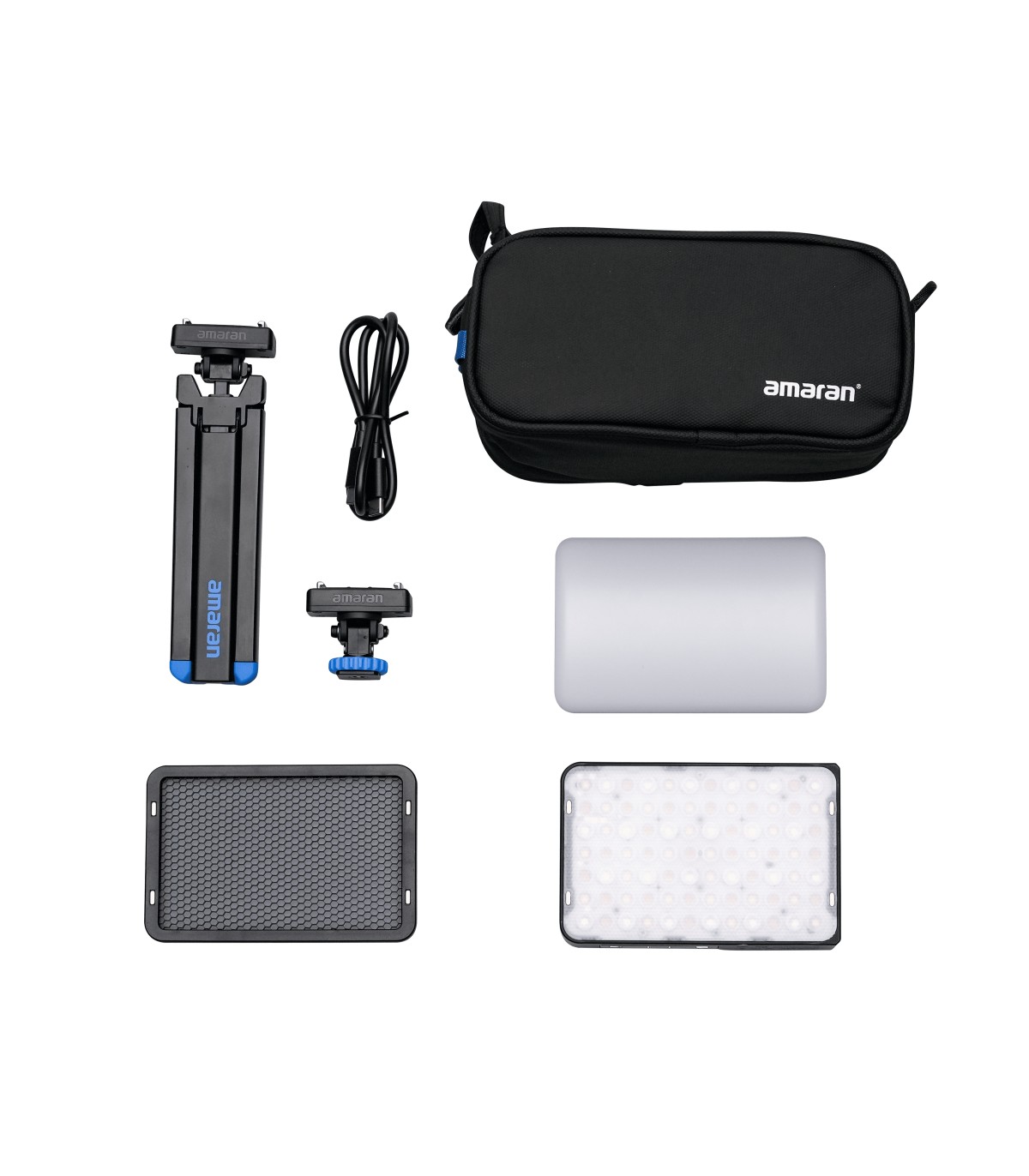 Incluye panel 32W, difusor dome, rótula con zapata, eggcrate 30º magnético, trípode sobremesa, cable carga USB-C, llave hexagonal 5mm y bolsa de transporte.