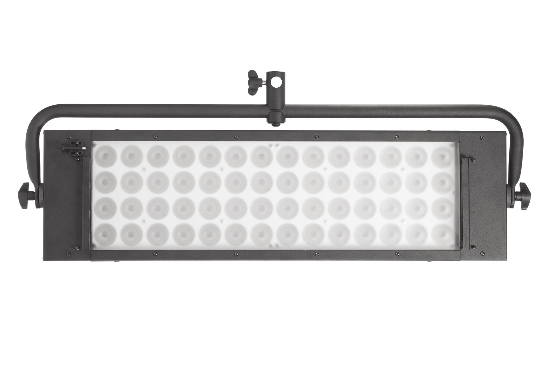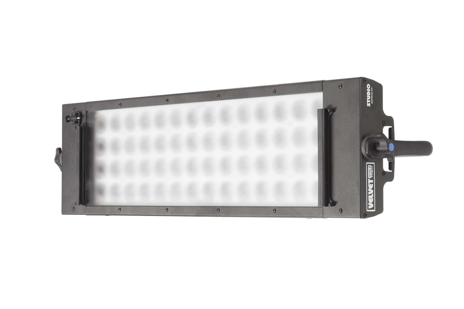 Panel MiniPower2 Studio de 120W LED matricial Bicolor 2700K a 6500K, DMX; luz dura con sombra marcada, haz 35º. Incluye cabeza 120W con horquilla y manguito 16mm, control DMX y cable alimentación AC de 3m. Datos fotométricos a 5600K: 8.900 Lux a 1m, 1250 a 3m. Indicado para platós y estudios con techo bajo, como luz principal; se puede suavizar con 3 difusores diferentes (no incluidos).