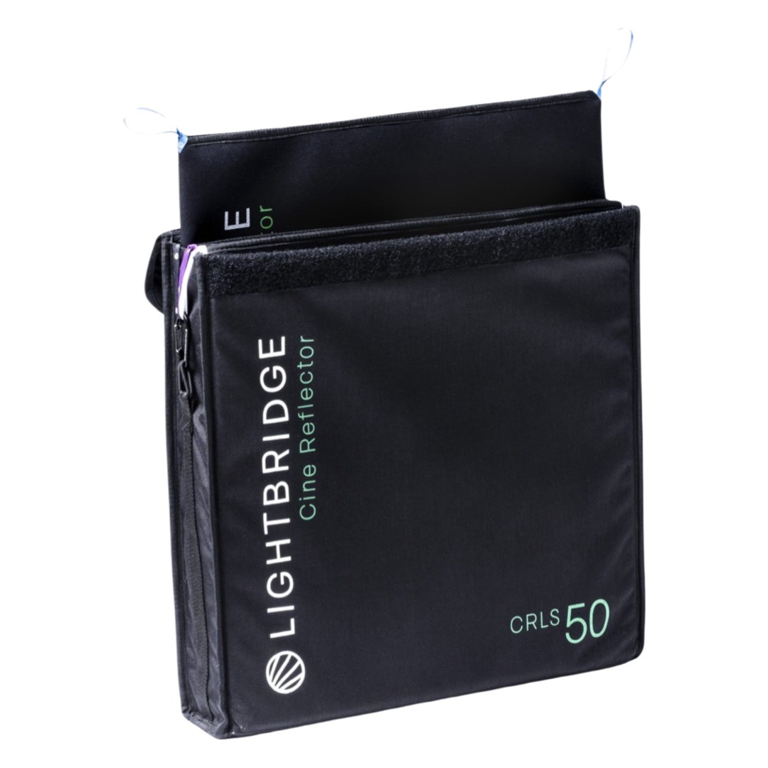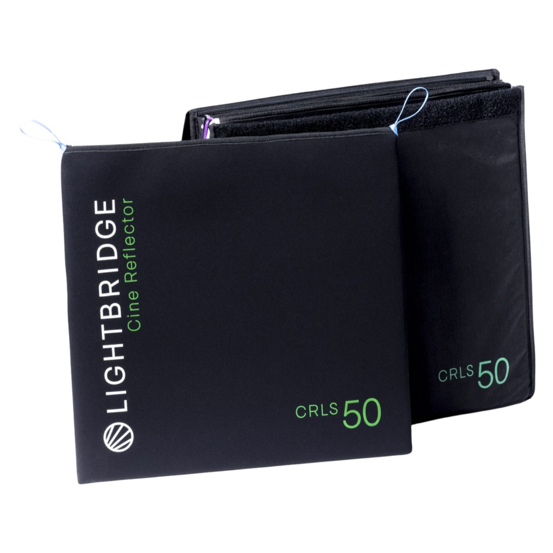 Kit LightBridge C-DIFF50 con 4 reflectores de 50x50cm. Siempre refleja la luz con la dureza de la fuente original, aunque varíe al ángulo del haz. Incluye 4 reflectores de pureza 95-98%: #1, el principal, de apertura del haz 4º aproximadamente, #2 de apertura 12º aprox., #3 de apertura 50º aprox. y #4 de apertura 95º aprox.; además incluye 4 fundas para los 4 reflectores y 1 bolsa negra para reflectores. Lightbridge está indicado para trabajar con pocas fuentes de luz, con HAZ PARALELO preferentemente, y jugar con los rebotes de los reflectores de diferentes aperturas de haz.