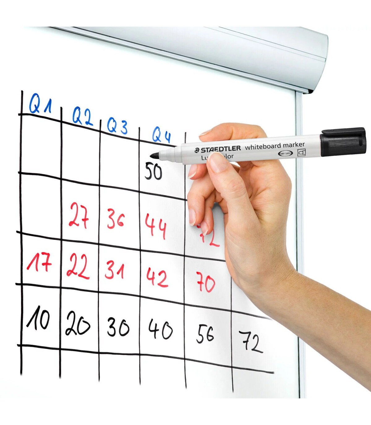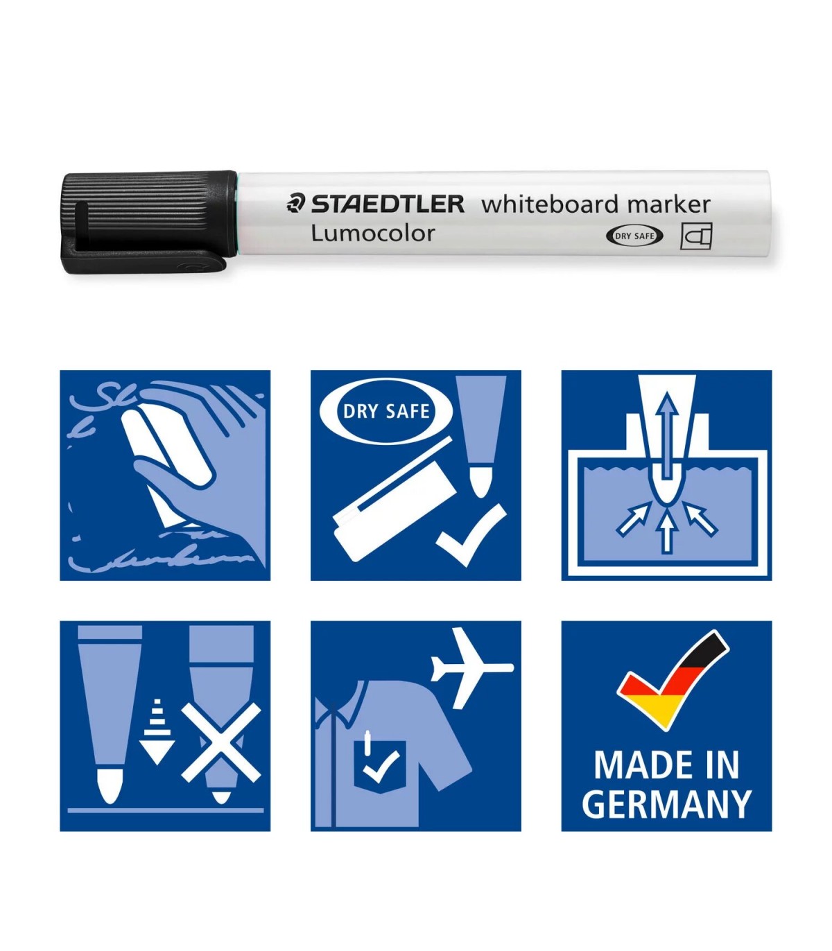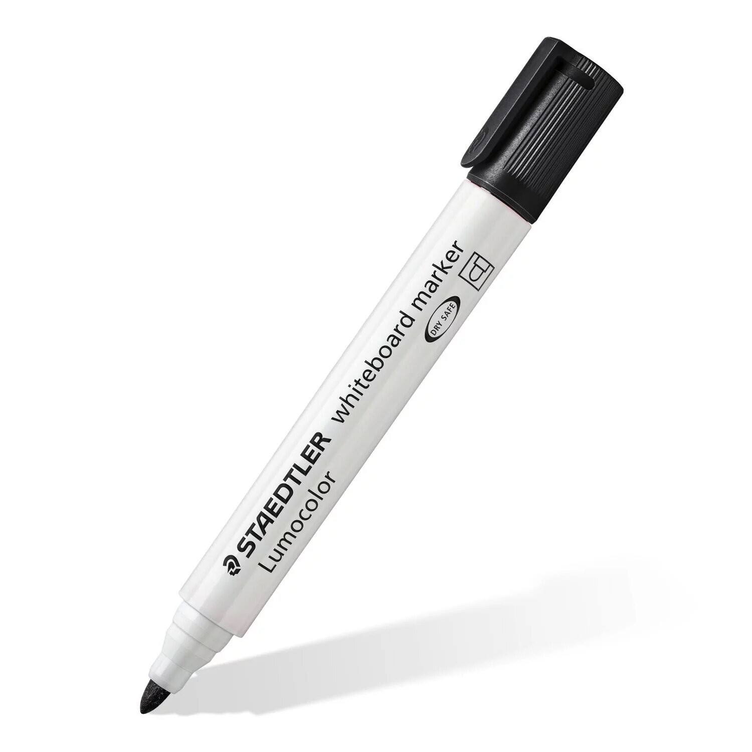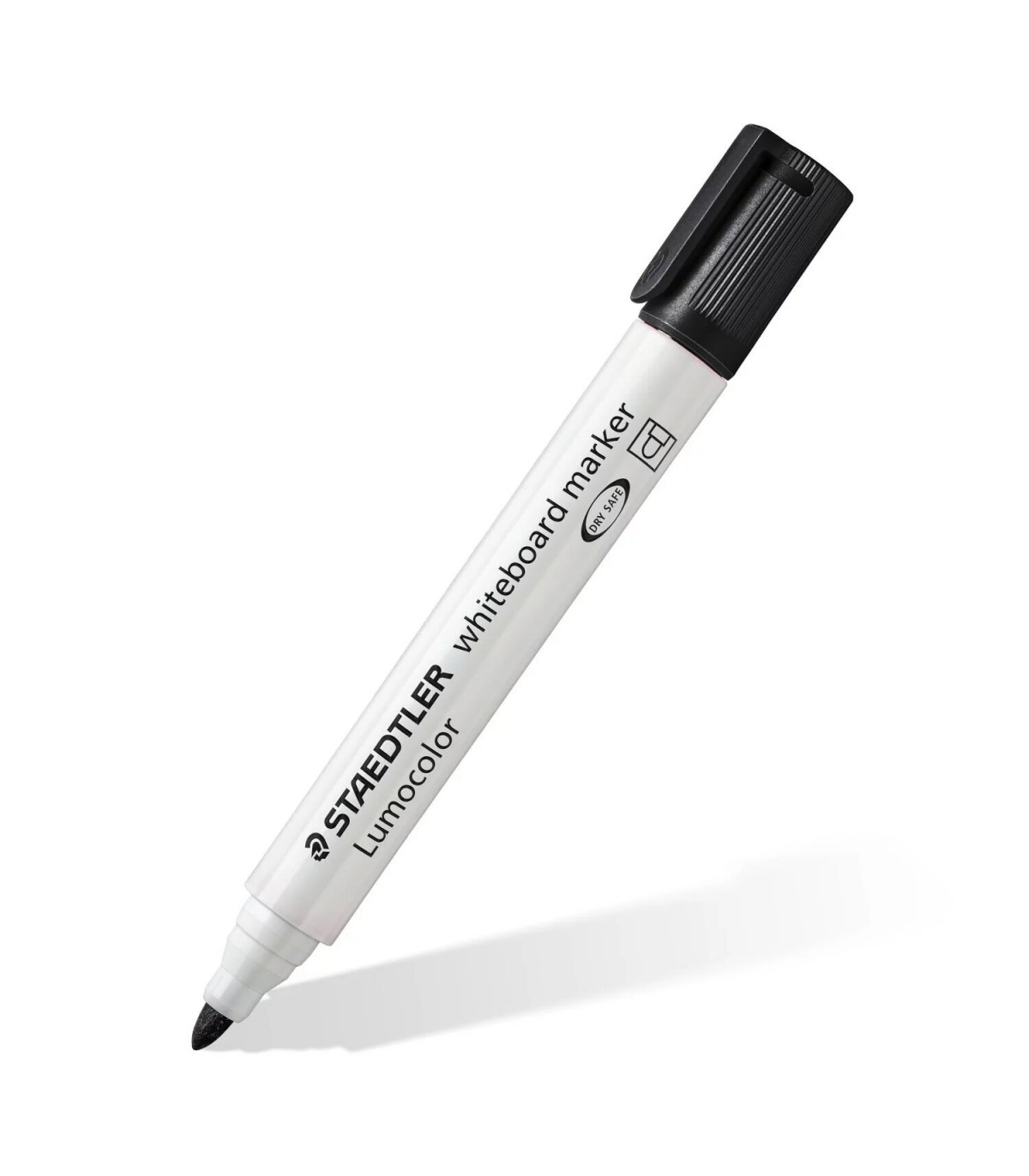 Rotulador Staedtler Lumocolor® 351 para pizarra y claqueta, color negro y punta con trazo de 2mm. Secado rápido y poco olor. Se puede limpiar en seco con un paño.
