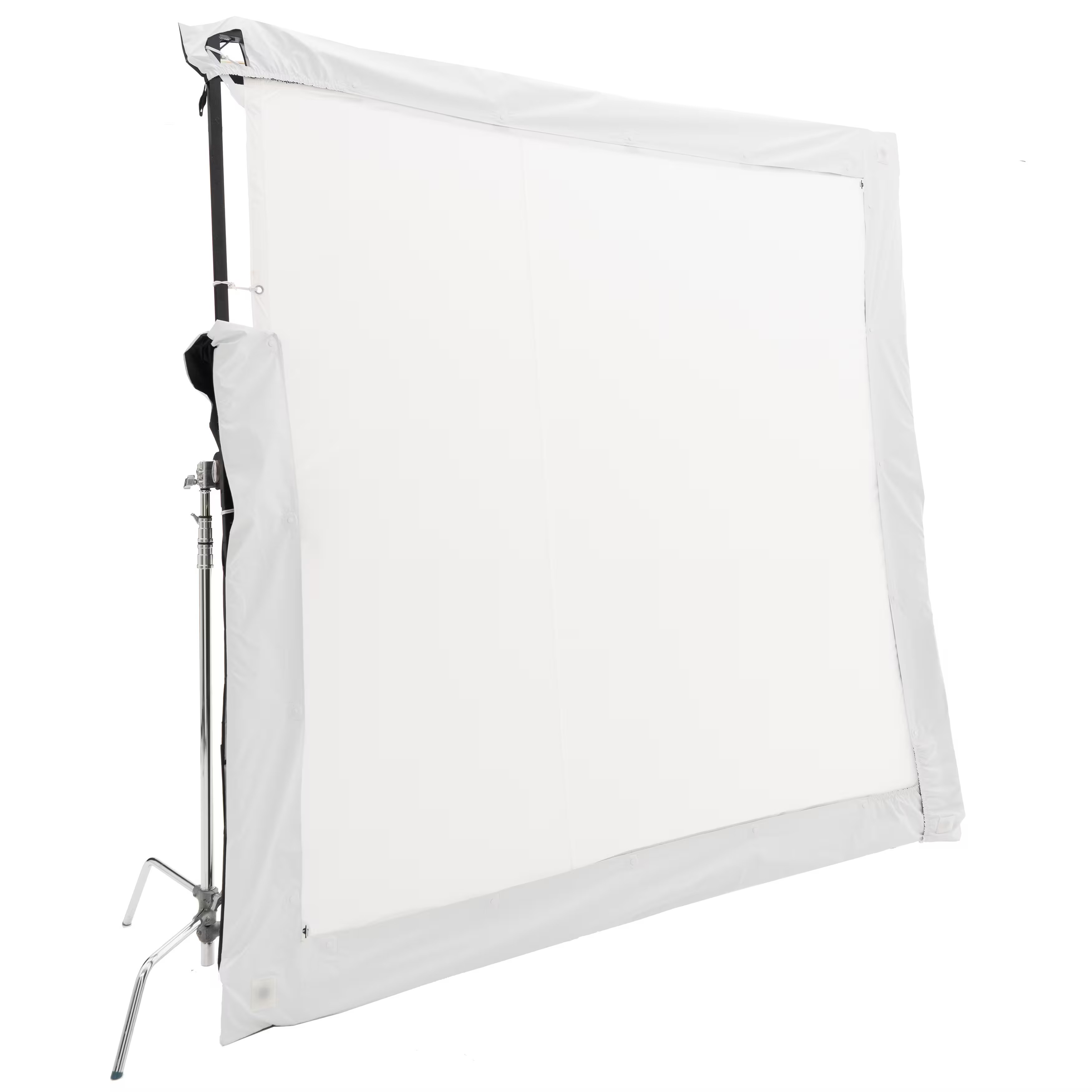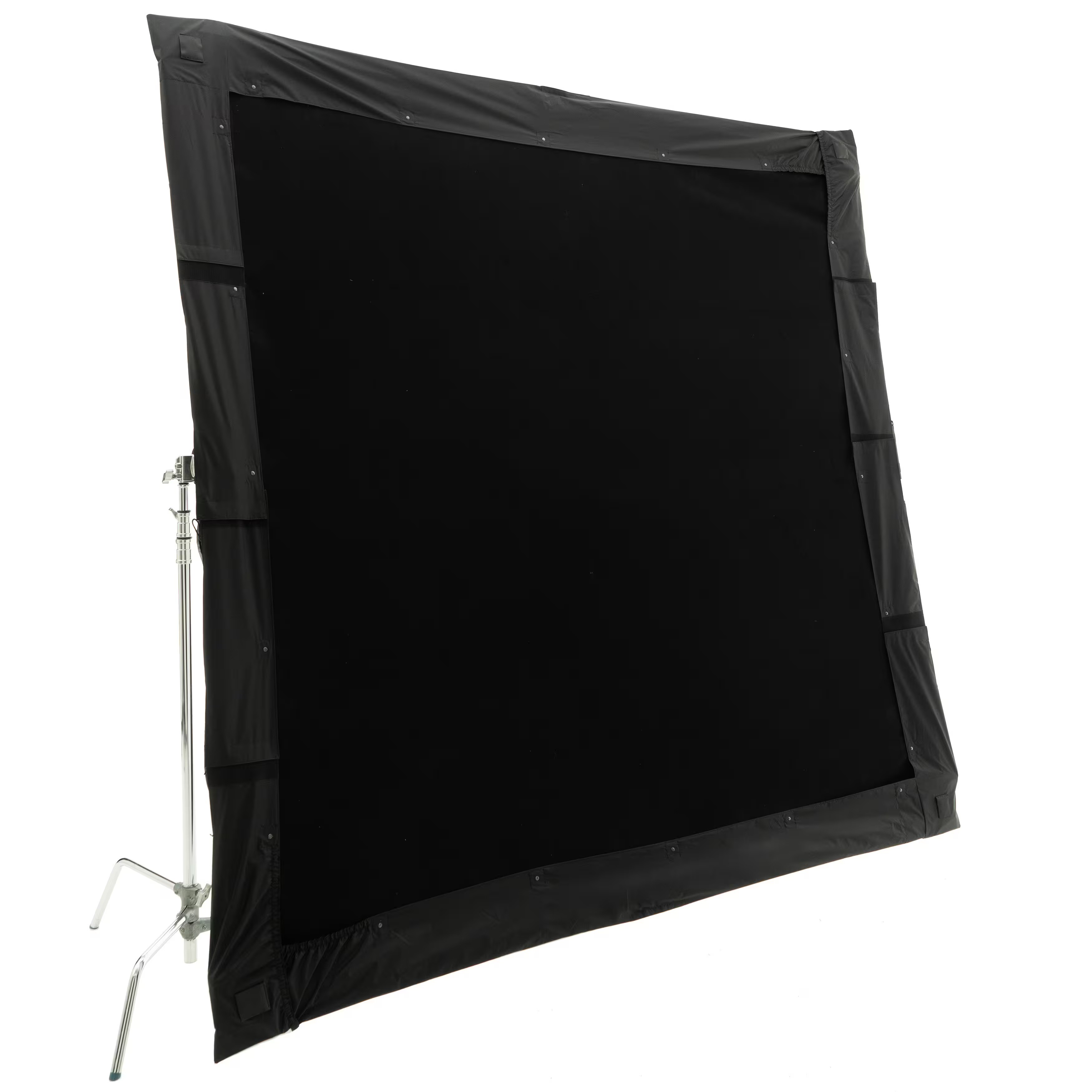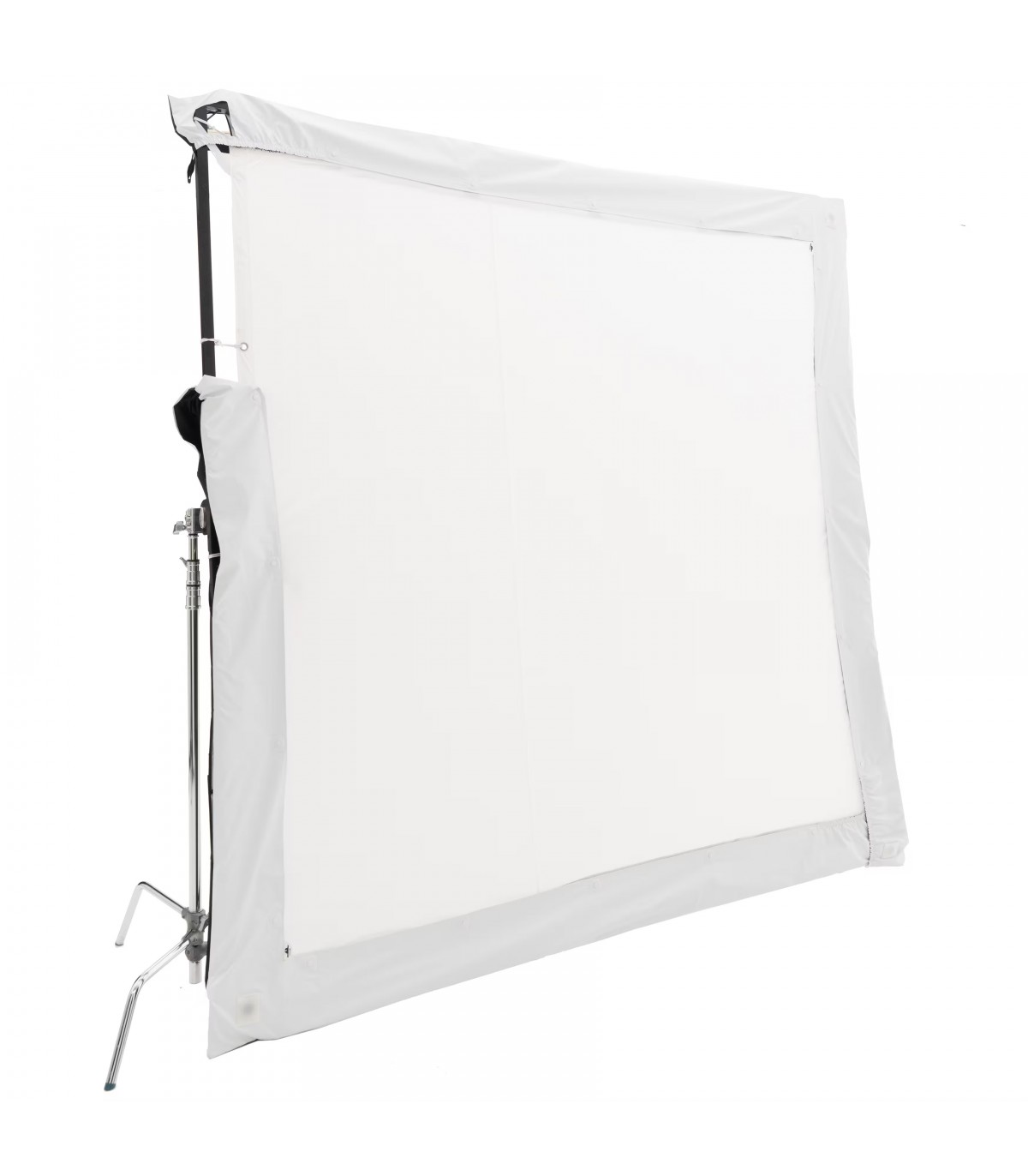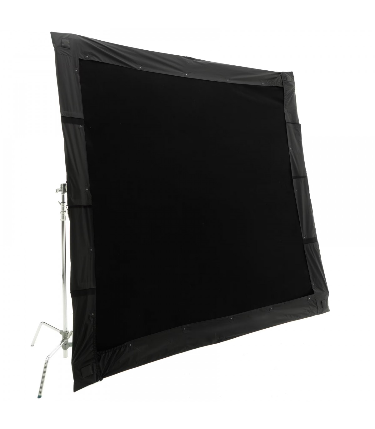 El SPILL KILLER de 12x12' de DoPchoice sirve para cubrir los marcos de 366x366cm y evitar las fugas de luz que aparecen entre el marco y la tela. Ayuda a garantizar una apariencia limpia y profesional para una iluminación uniforme en un set. Resistente al viento y a la lluvia. Incluye dos fundas en forma de "L" y bolsa de transporte.
