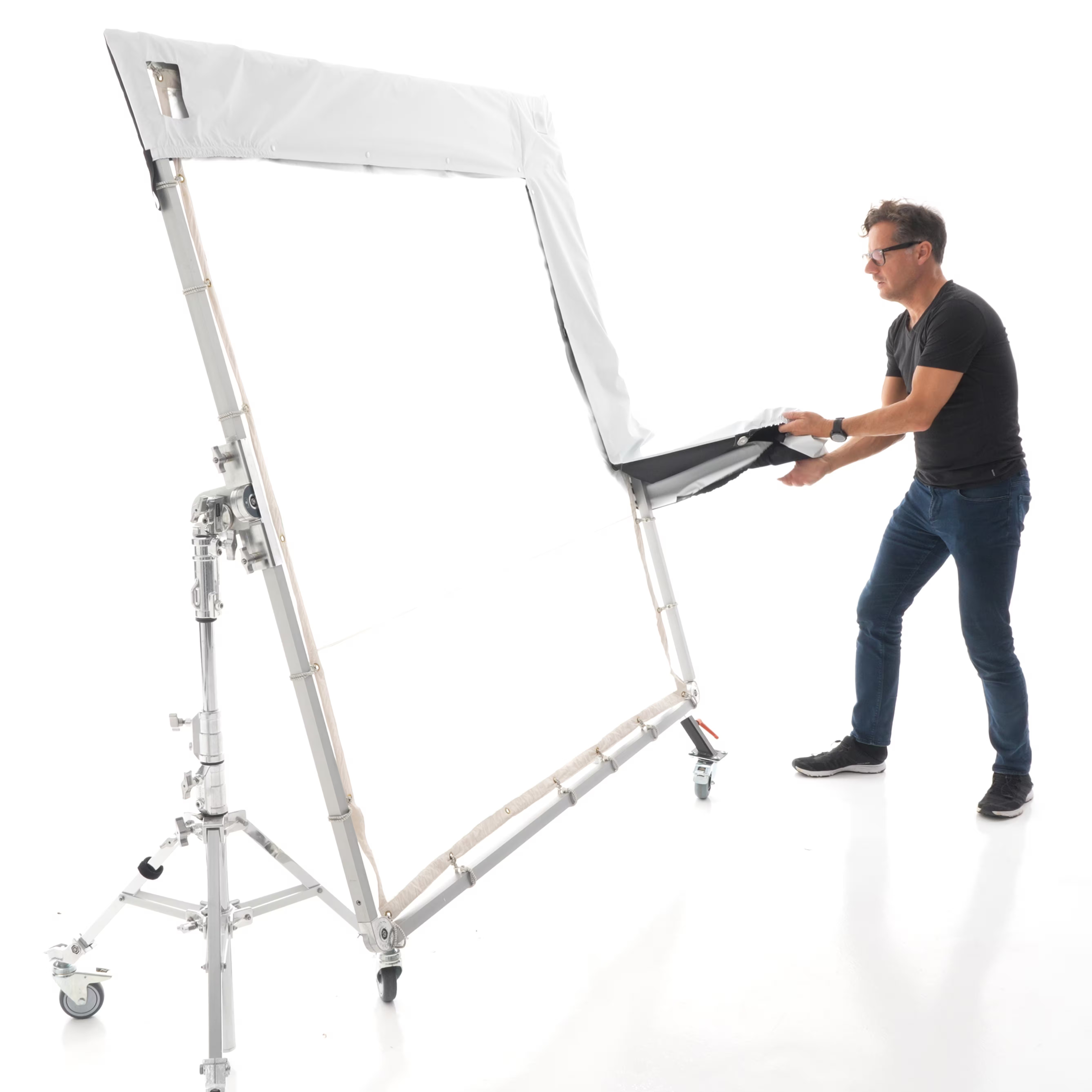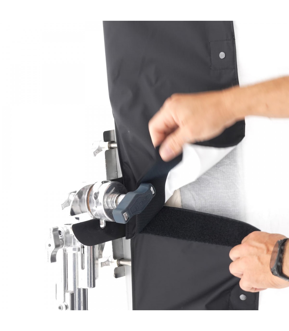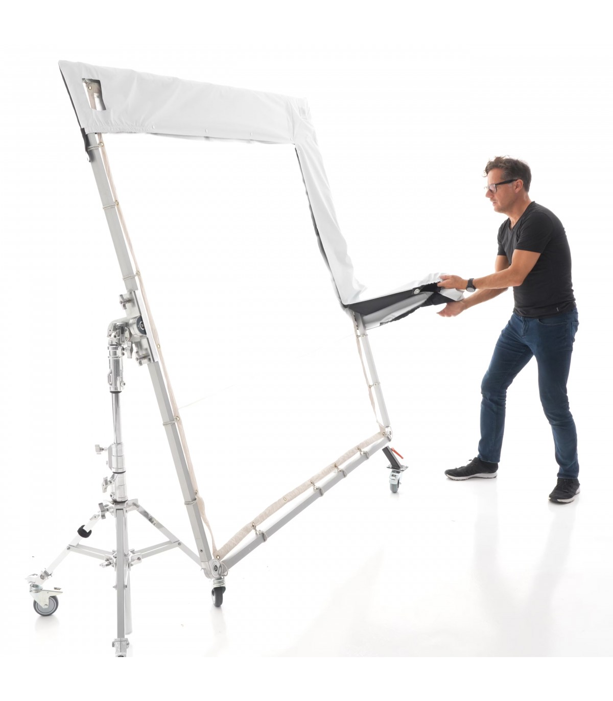 El SPILL KILLER de 12x12' de DoPchoice sirve para cubrir los marcos de 366x366cm y evitar las fugas de luz que aparecen entre el marco y la tela. Ayuda a garantizar una apariencia limpia y profesional para una iluminación uniforme en un set. Resistente al viento y a la lluvia. Incluye dos fundas en forma de "L" y bolsa de transporte.