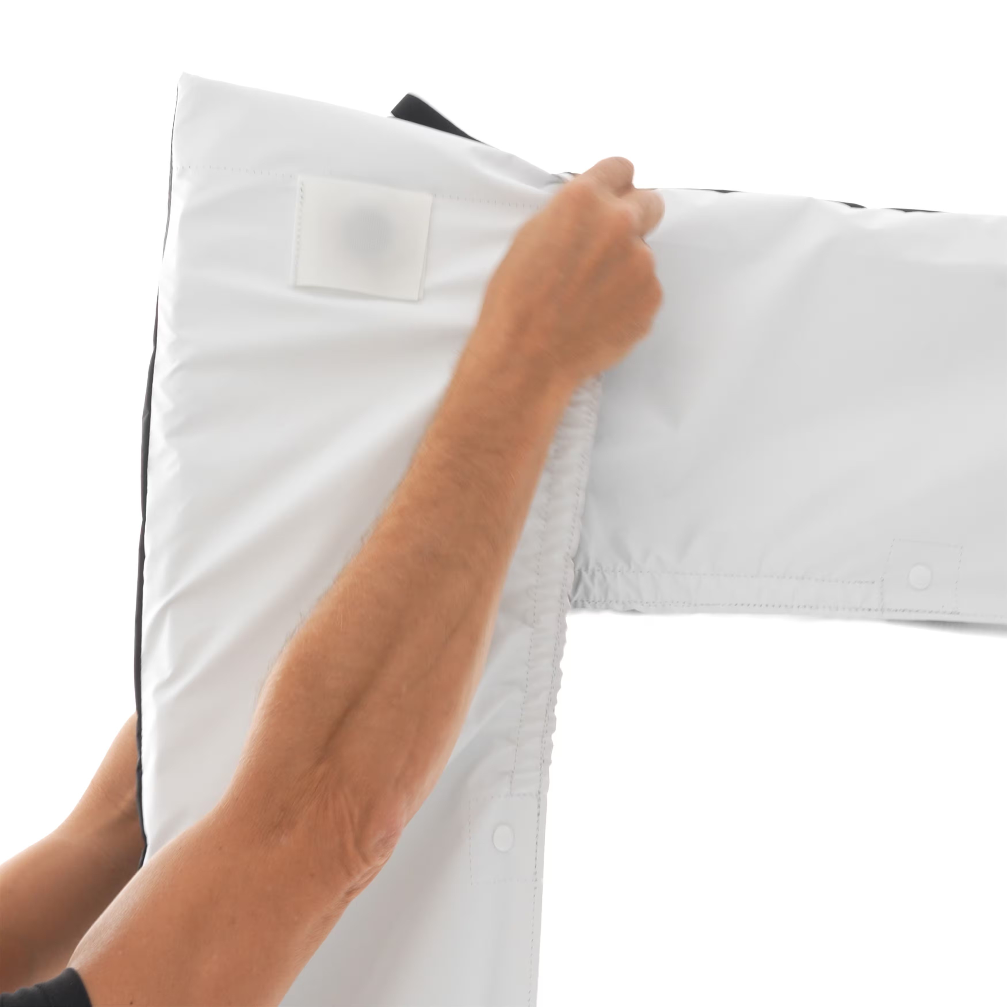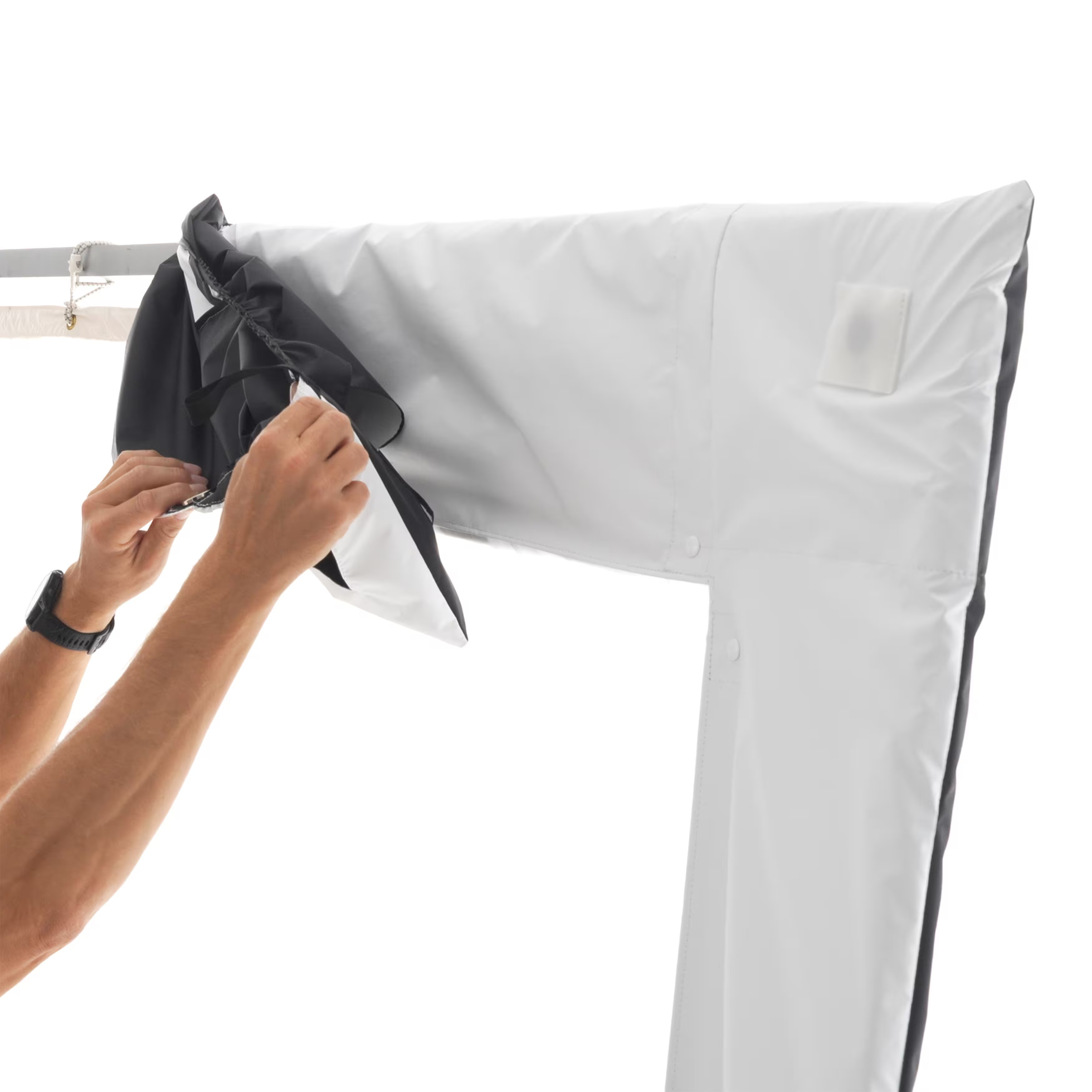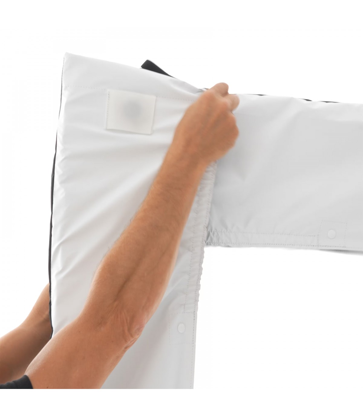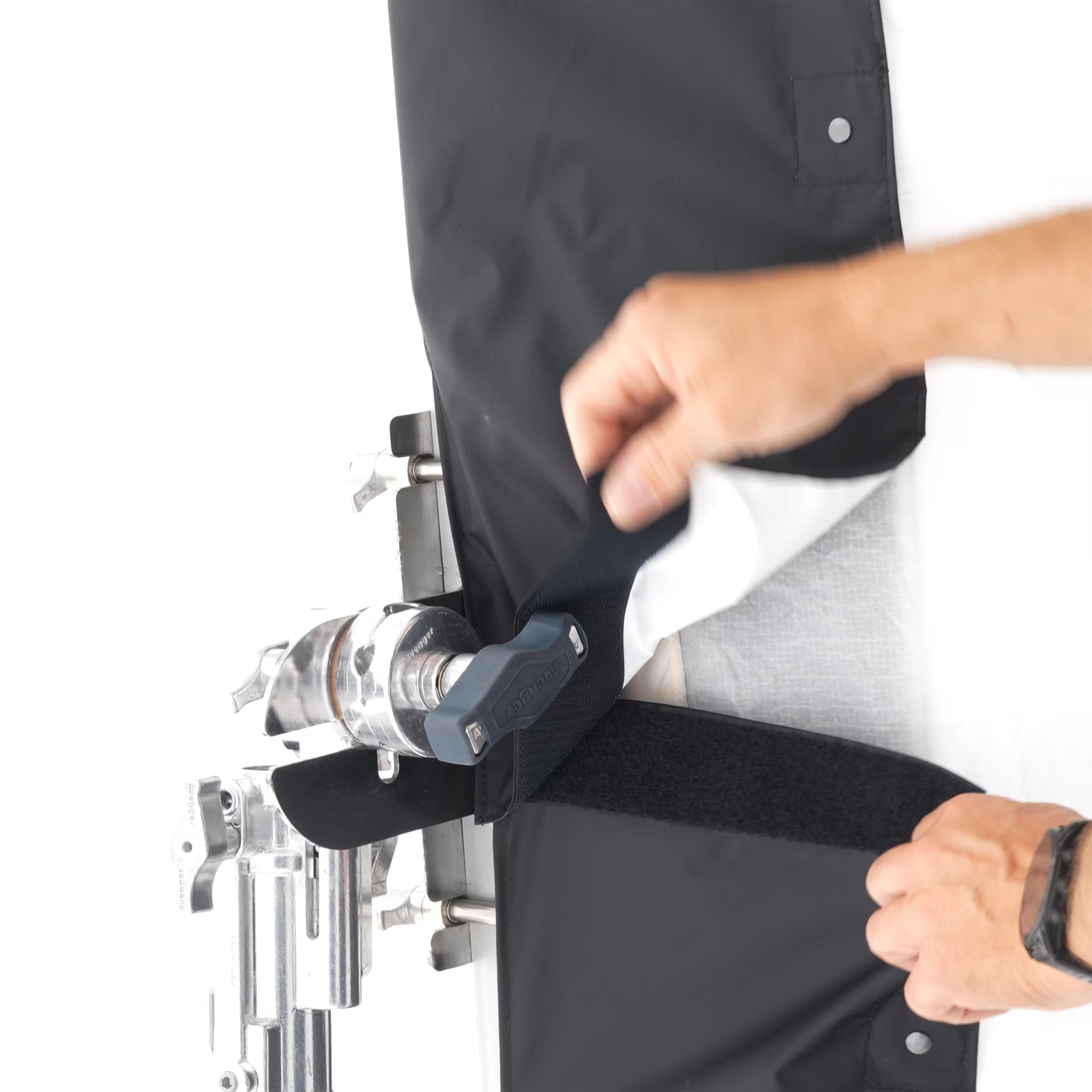 El SPILL KILLER de 12x12' de DoPchoice sirve para cubrir los marcos de 366x366cm y evitar las fugas de luz que aparecen entre el marco y la tela. Ayuda a garantizar una apariencia limpia y profesional para una iluminación uniforme en un set. Resistente al viento y a la lluvia. Incluye dos fundas en forma de "L" y bolsa de transporte.