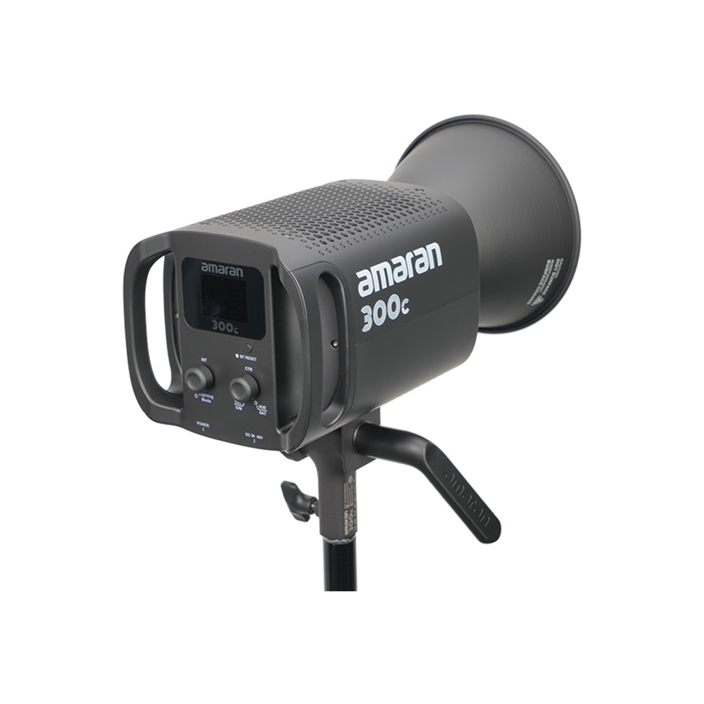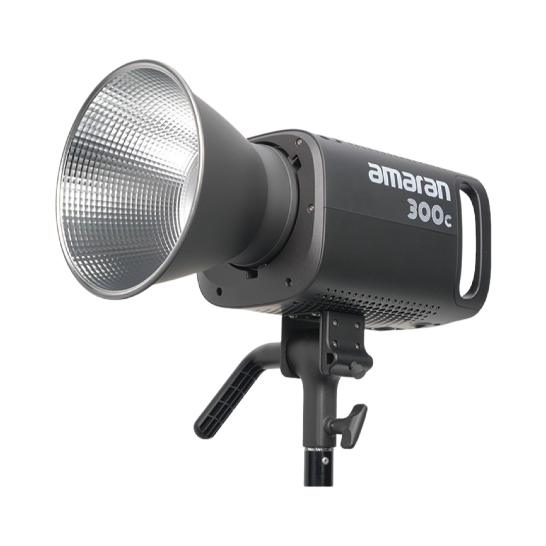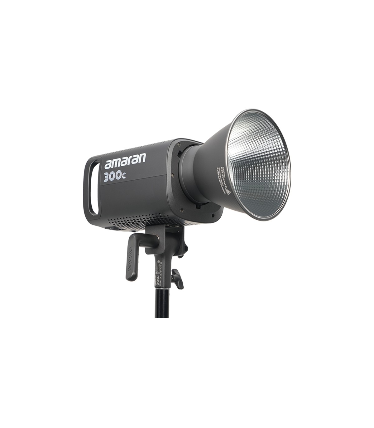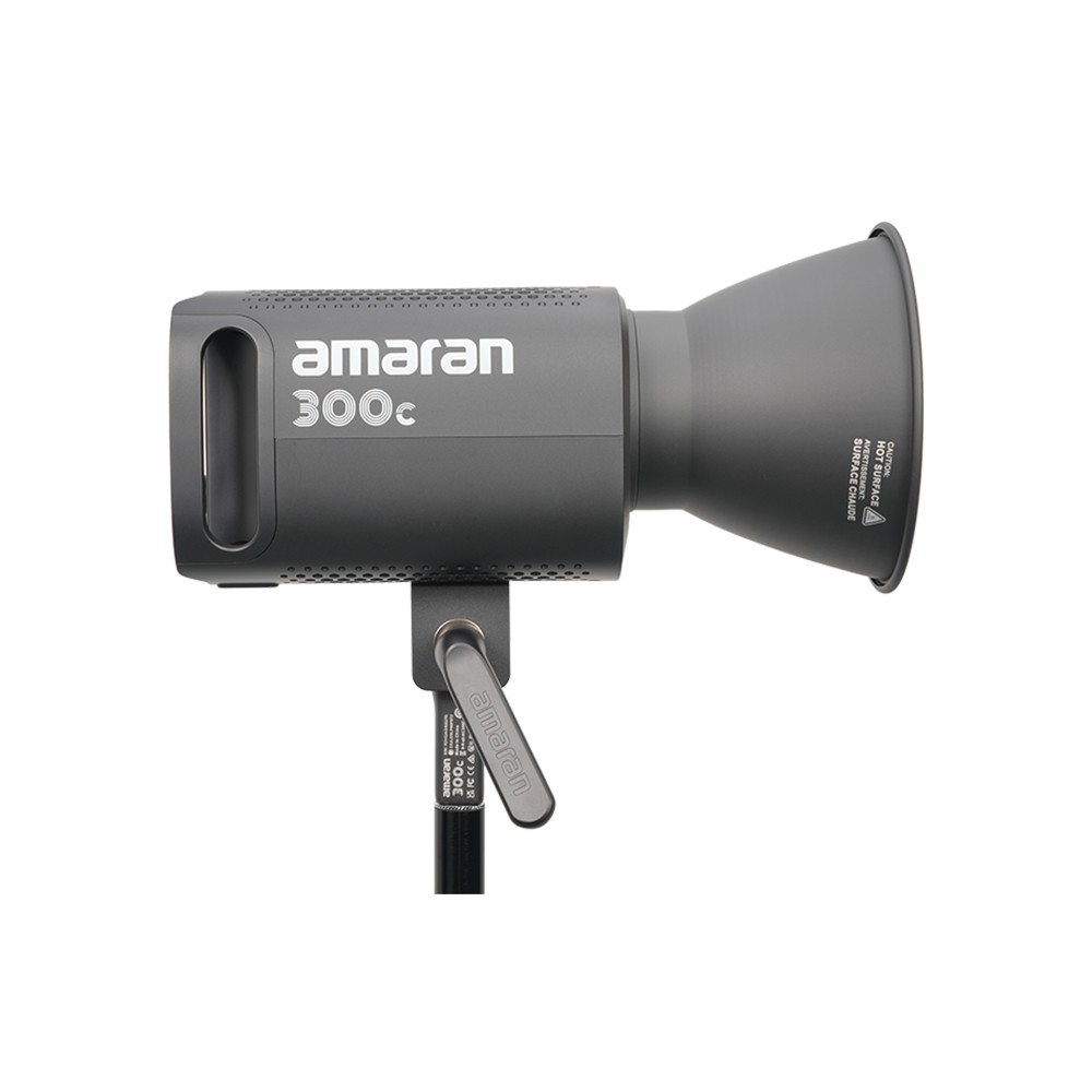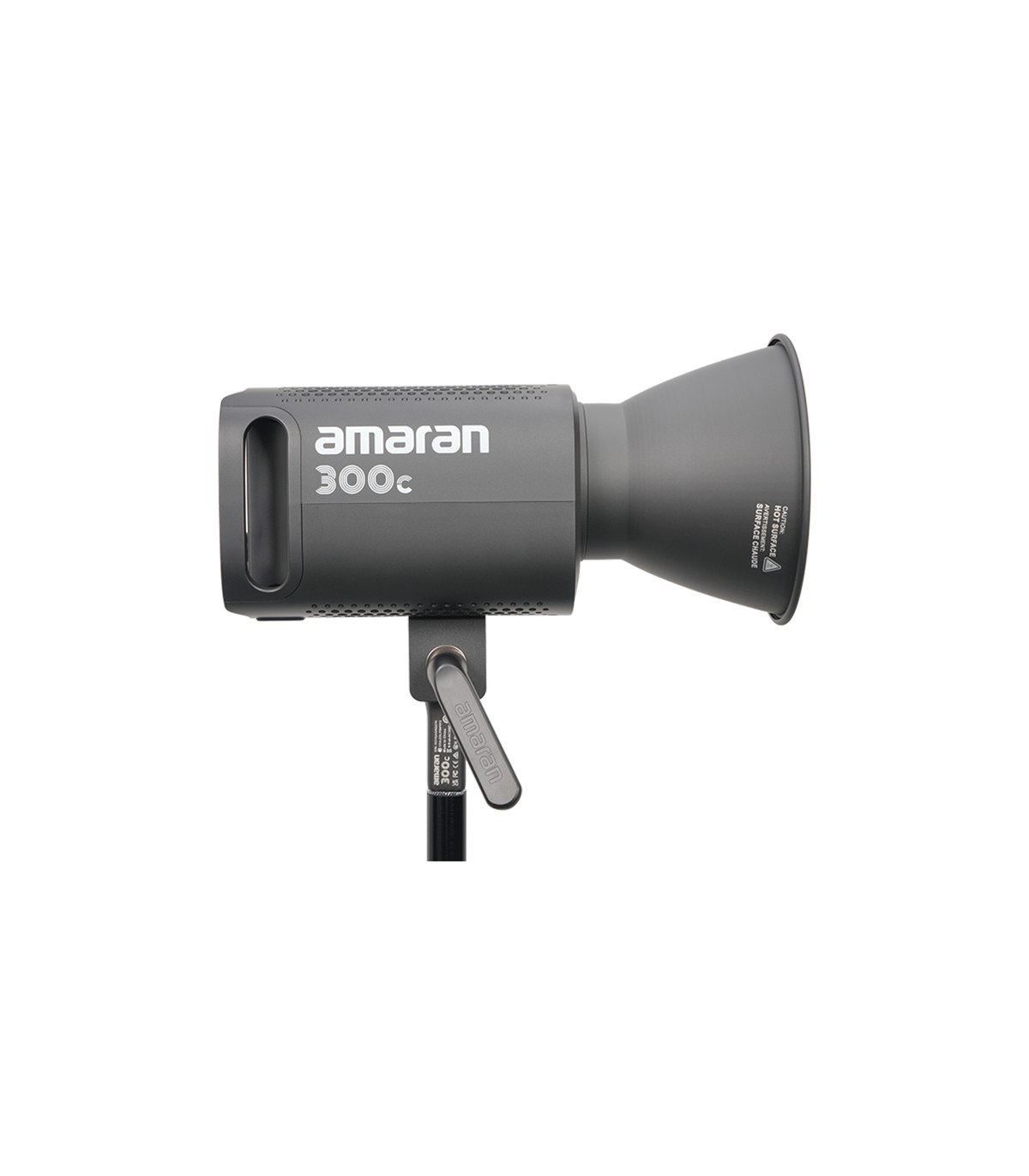 Foco COB 300c de 300W COB LED RGBWW 2500K a 7500K de Amaran. LIMITED EDITION color charcoal. Luz dura con sombra marcada, haz 89,6º sin reflector, 64,8º con hyper reflector. Modos de trabajo: CCT con ajuste verde/magenta, HSI, RGB, gelatinas y efectos.