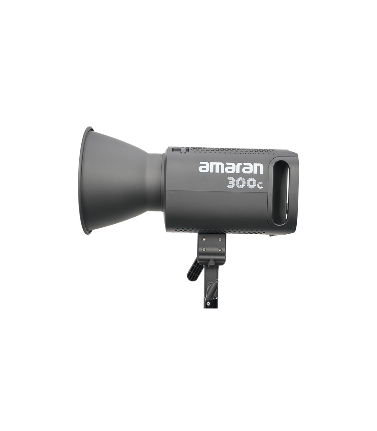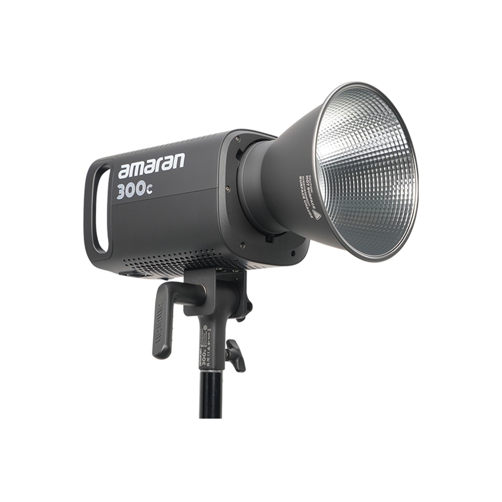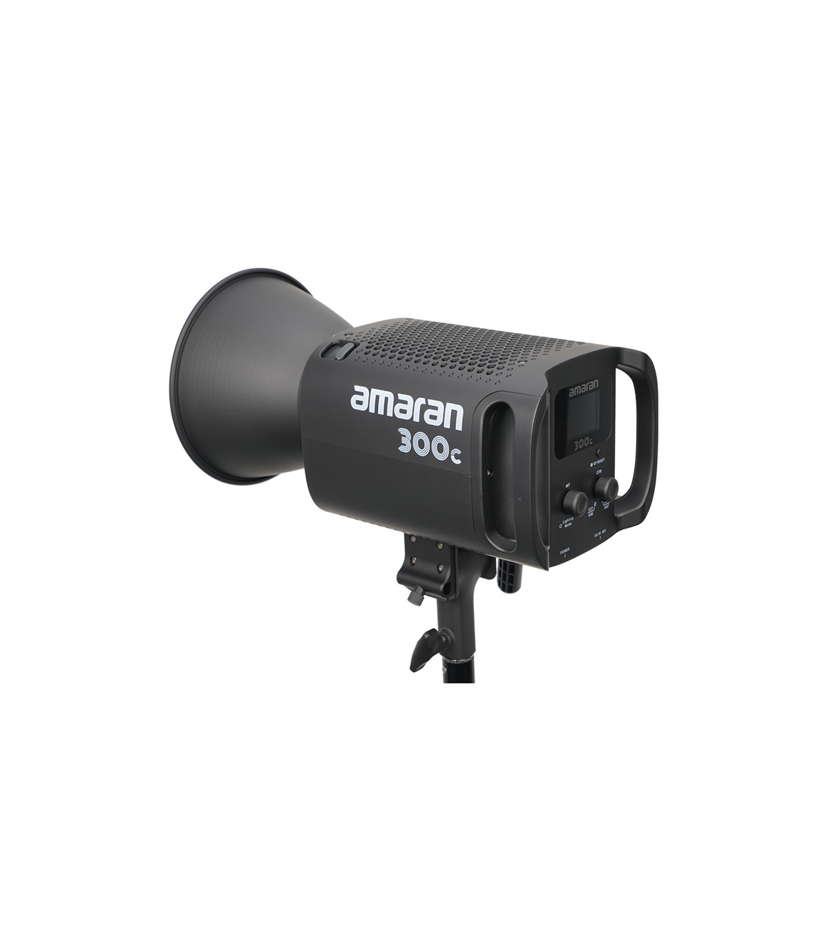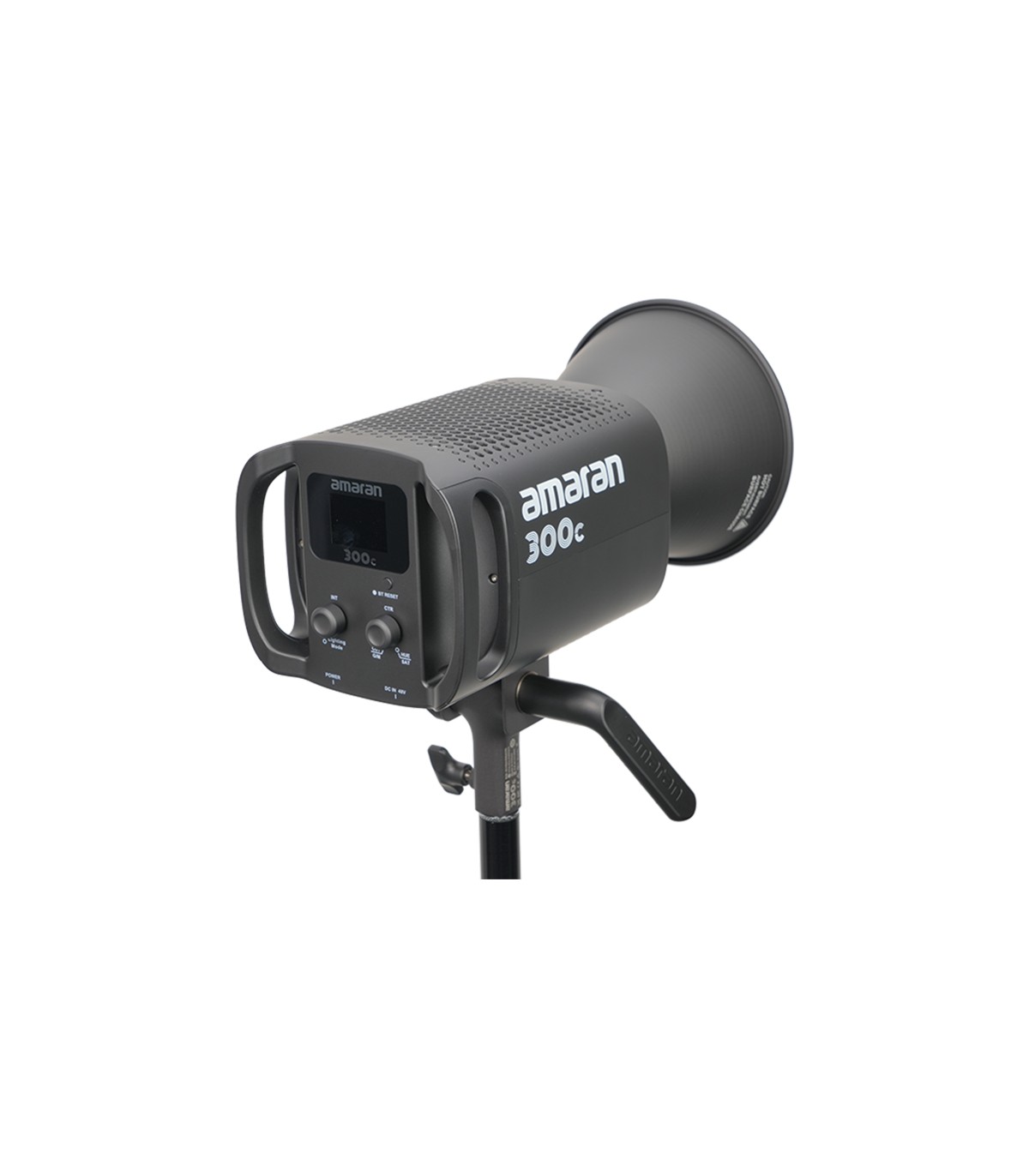 Foco COB 300c de 300W COB LED RGBWW 2500K a 7500K de Amaran. LIMITED EDITION color charcoal. Luz dura con sombra marcada, haz 89,6º sin reflector, 64,8º con hyper reflector. Modos de trabajo: CCT con ajuste verde/magenta, HSI, RGB, gelatinas y efectos.
