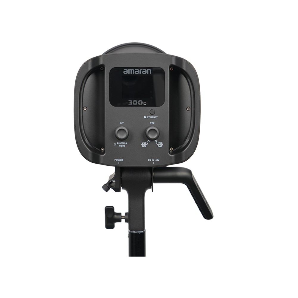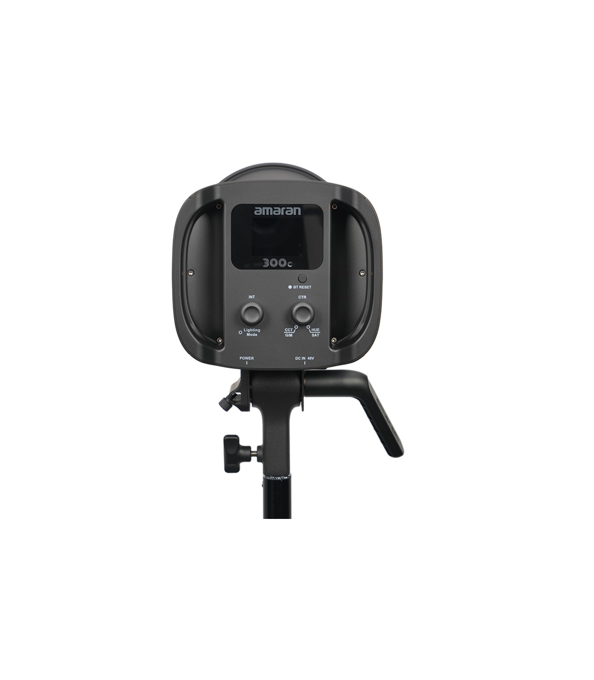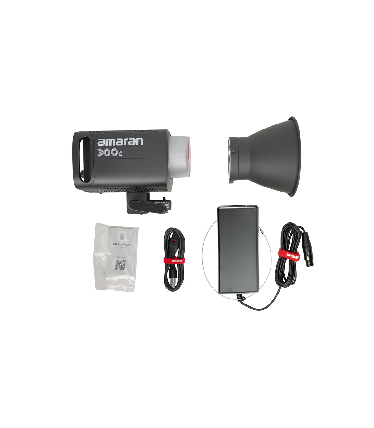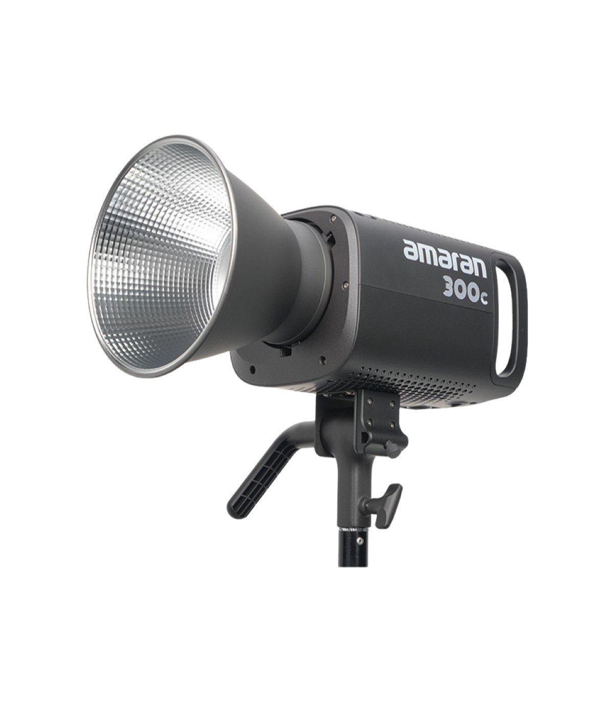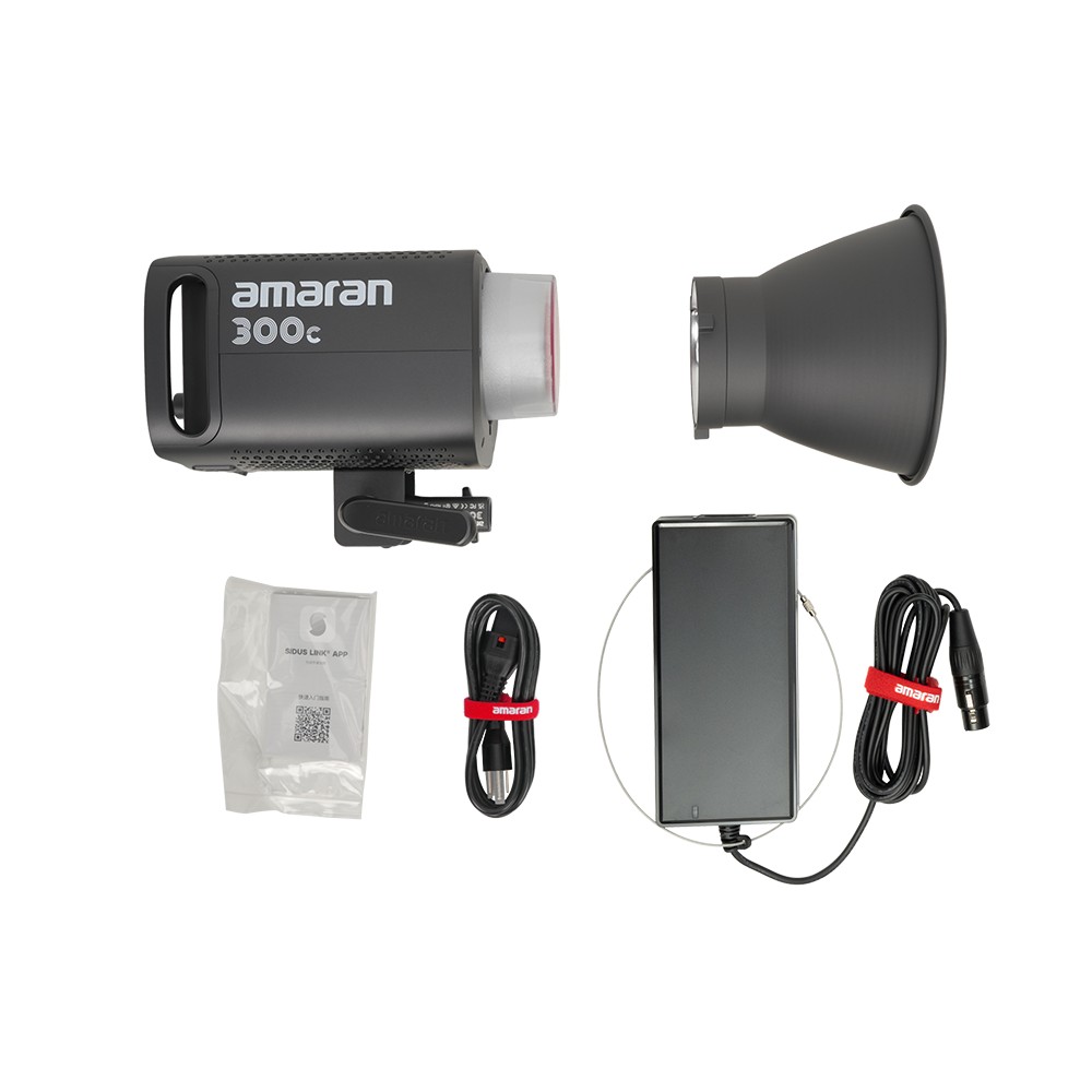 Foco COB 300c de 300W COB LED RGBWW 2500K a 7500K de Amaran. LIMITED EDITION color charcoal. Luz dura con sombra marcada, haz 89,6º sin reflector, 64,8º con hyper reflector. Modos de trabajo: CCT con ajuste verde/magenta, HSI, RGB, gelatinas y efectos.