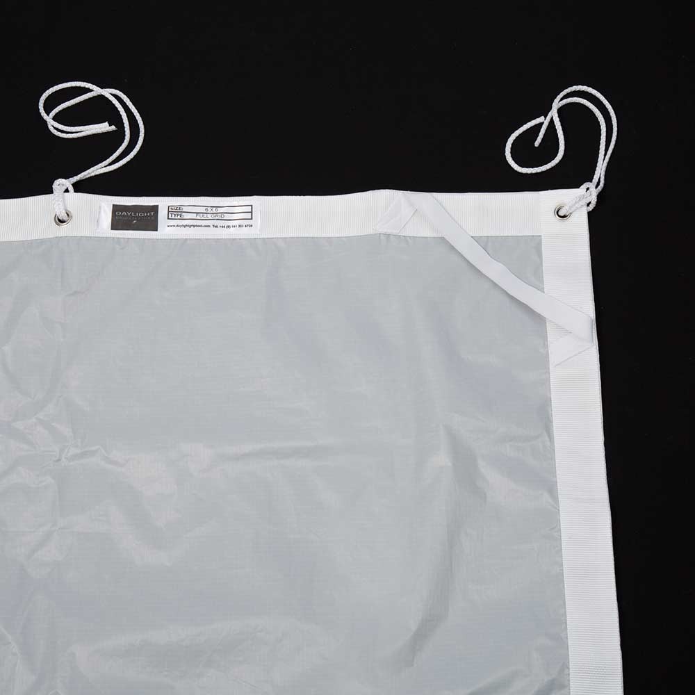 Textil para palio de 244x244cm (8x8') de Daylight. Grid cloth (para interiores). Difusor suave de tejido tramado reforzado similar a la seda. La tela de palio va reforzada por los cuatro lados y con ojales para las cintas de atar al palio; bolsa y cintas incluidos.
