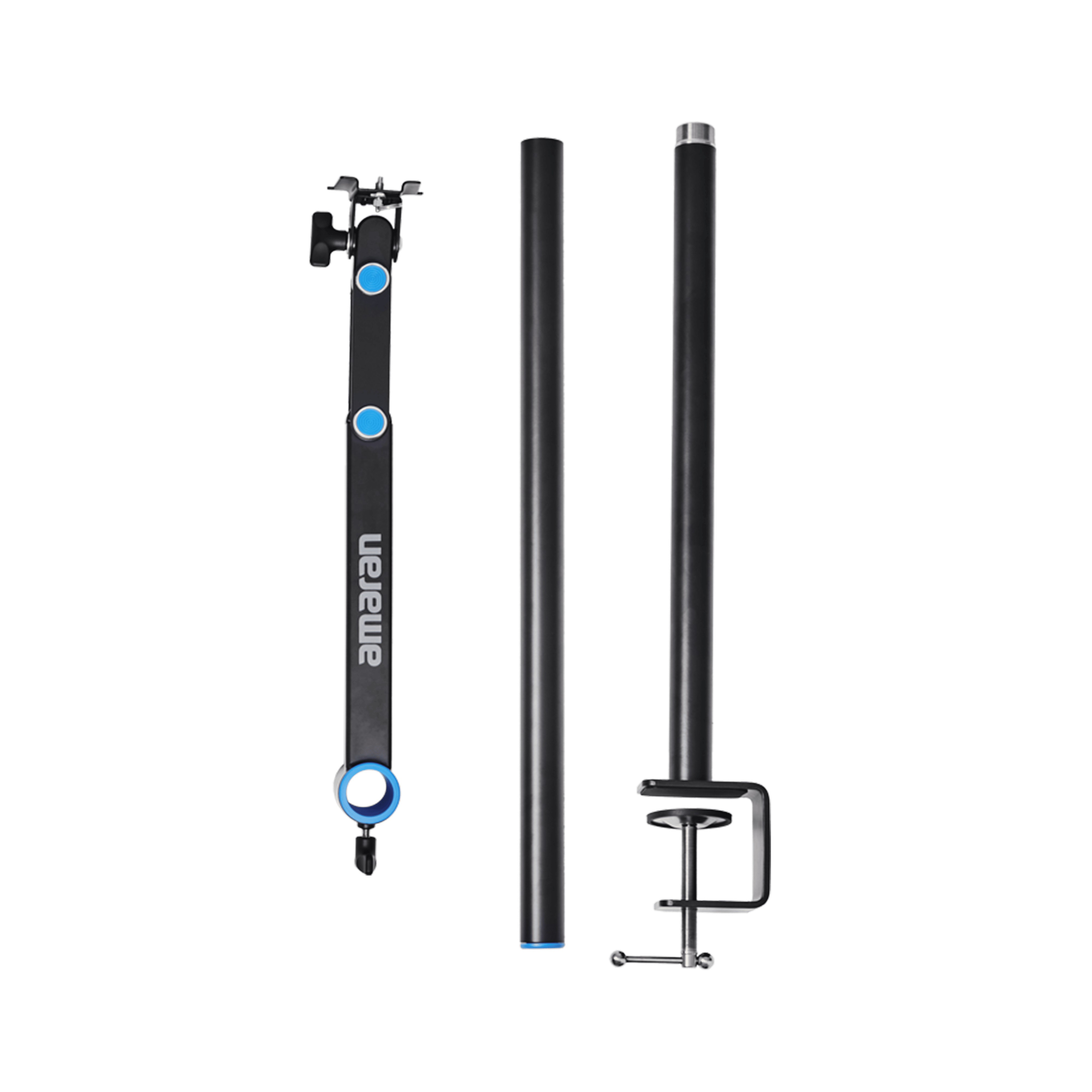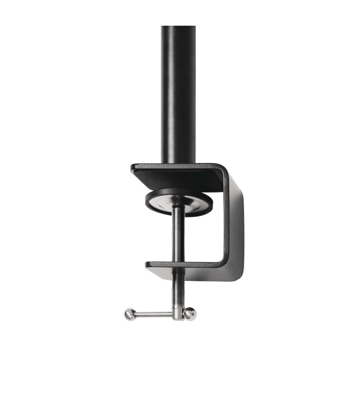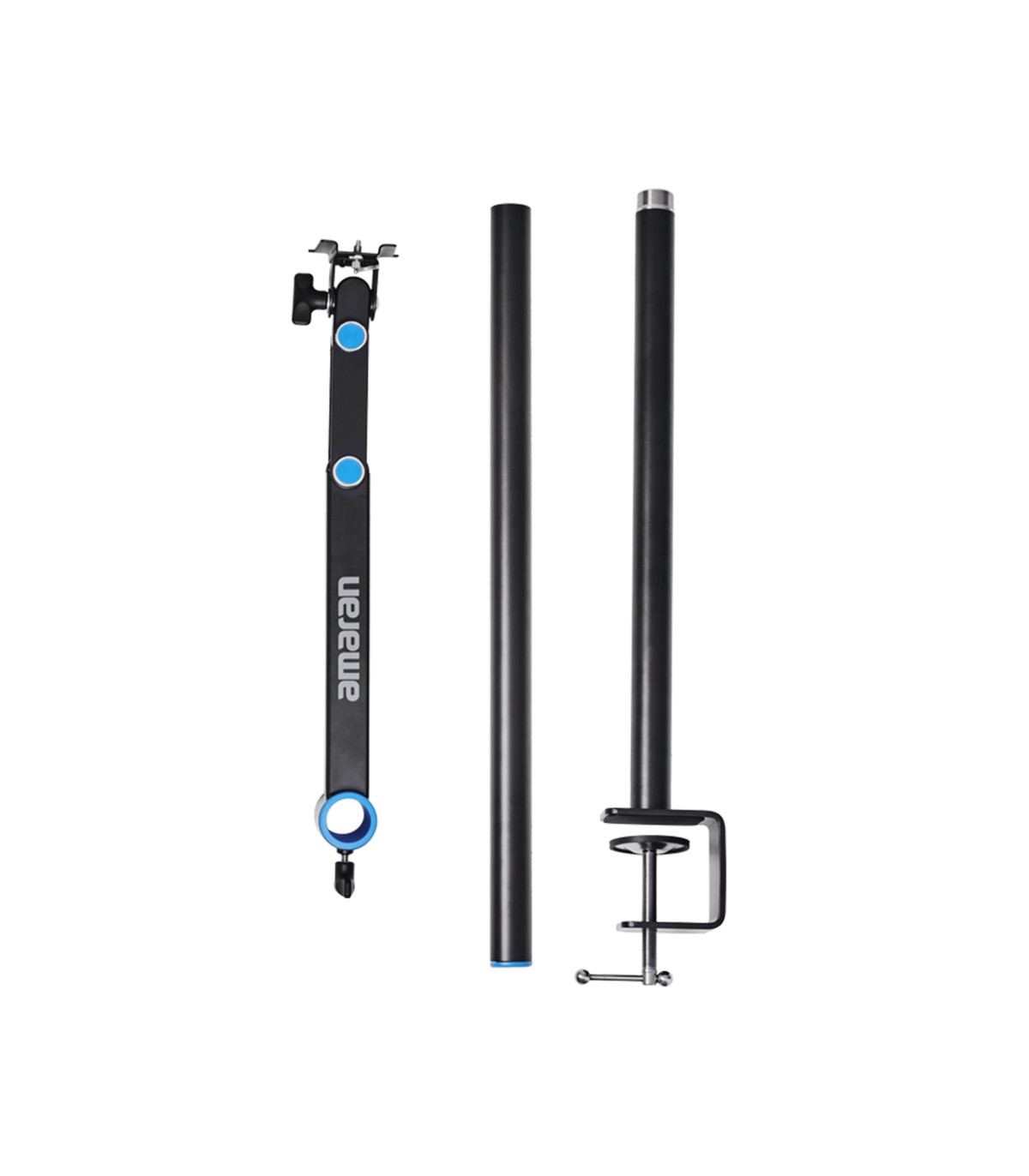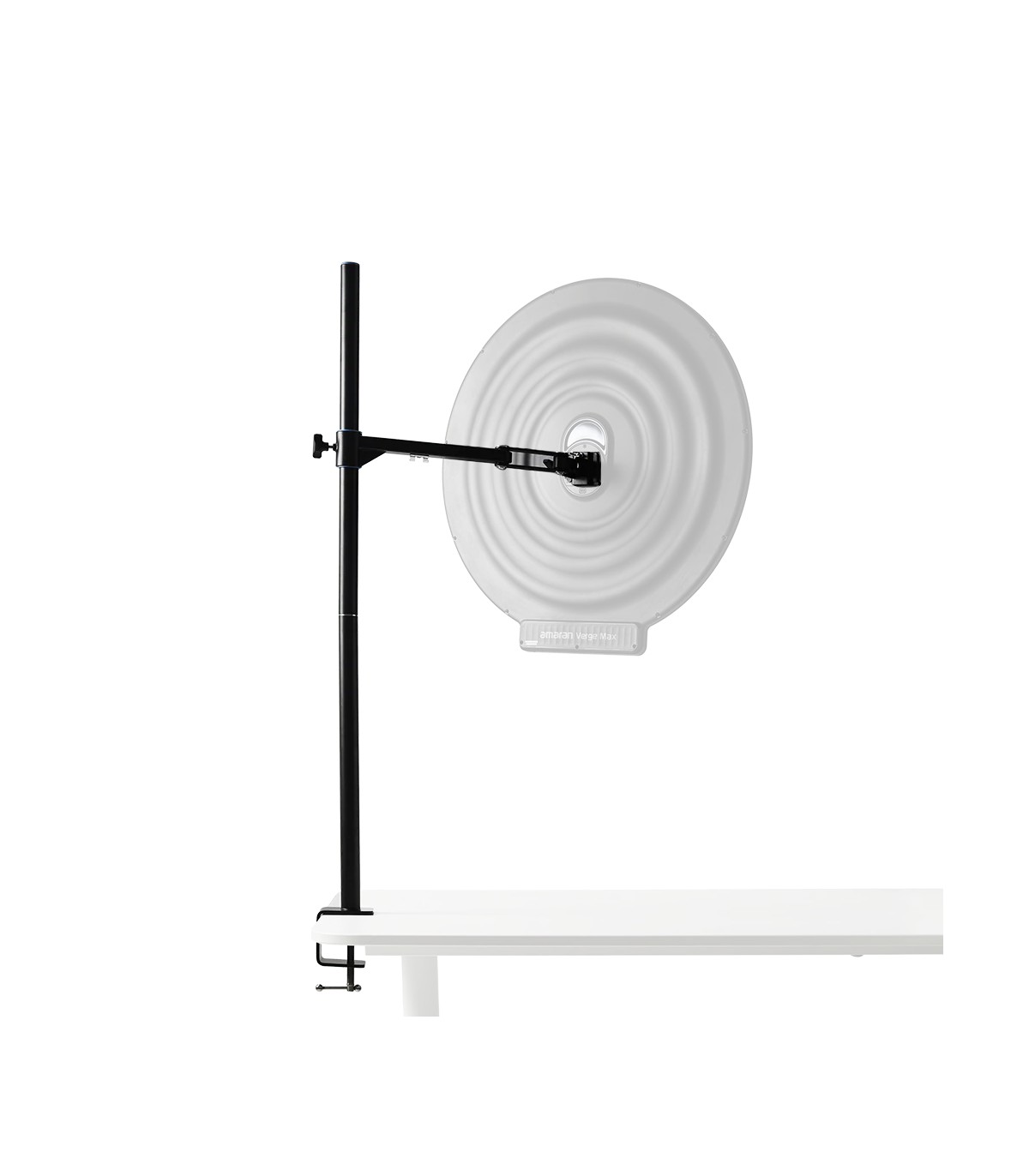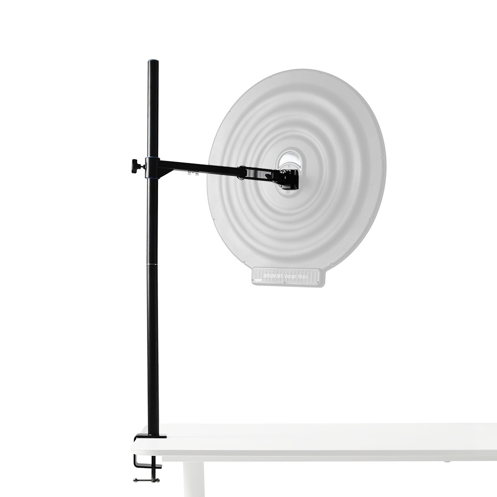 Soporte de sobremesa negro con abrazadera totalmente ajustable para montar los paneles Amaran Verge o Verge Max directamente al escritorio. Sistema de bloqueo rápido para un montaje rápido, seguro y sin herramientas. Brazo de montaje giratorio de 360° para alcanzar y colocar la luz exactamente donde se necesita. Control de giro e inclinación de 180° para una iluminación dinámica desde arriba o desde un ángulo bajo.