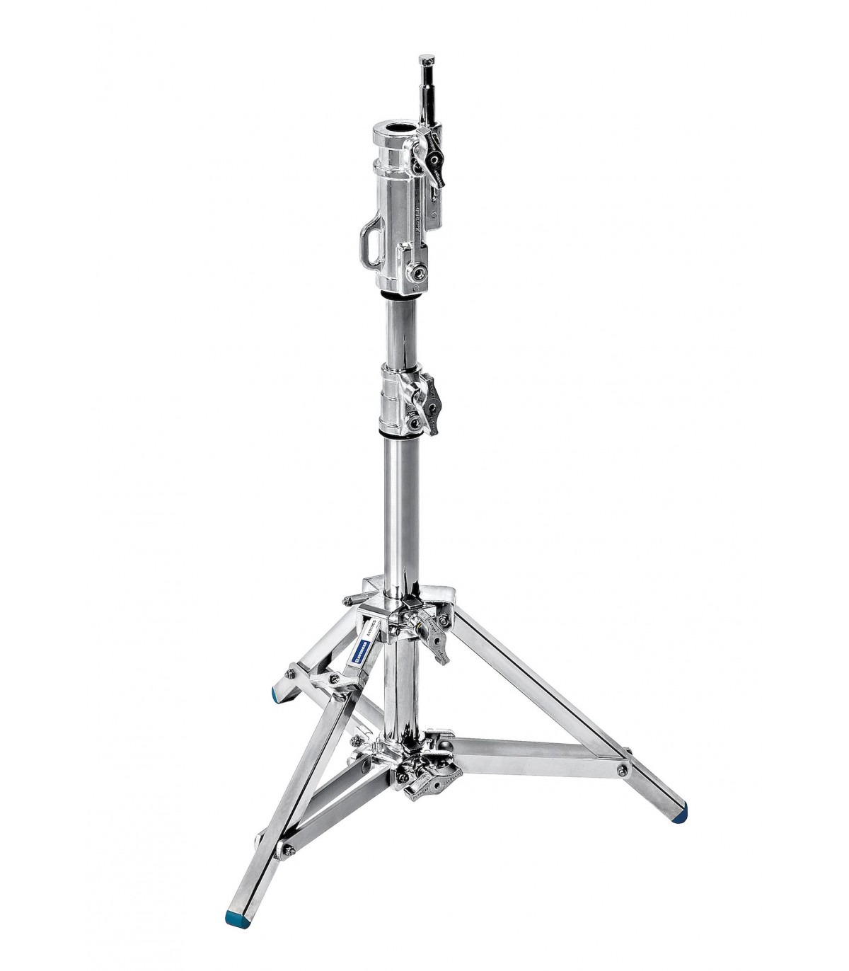 Trípode Combo 10 de acero cromado con cabeza universal (manguito 29mm y espárrago 16mm) de Avenger. Trípode de 2 secciones (1 extensión). Alturas: máxima 100cm, mínima 64cm, plegado 62cm. Otras medidas: diámetro huella 57cm, capacidad 30kg, peso 4,5kg. Avenger es la marca de referencia en la industria del cine. Este es el trípode más bajo utilizado para focos o paneles medianos y grandes.