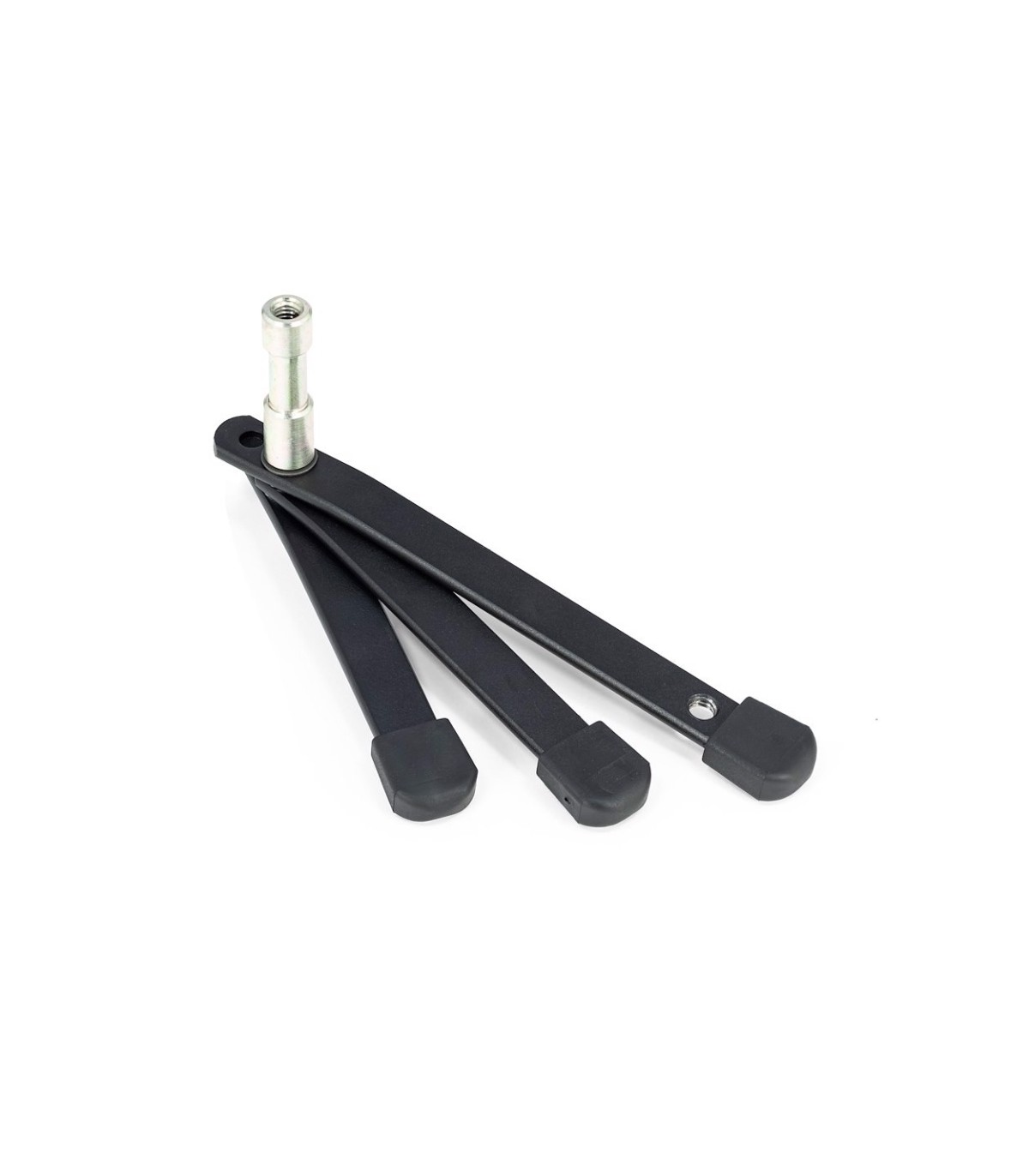 Base trípode Backlite Mini de acero pintado en negro, con espárrago 16mm. También conocido como trípode araña mini. Altura 9,7cm, diámetro huella 40cm, capacidad 10kg, peso 0,52kg. Para montar proyectores pequeños a ras de suelo.