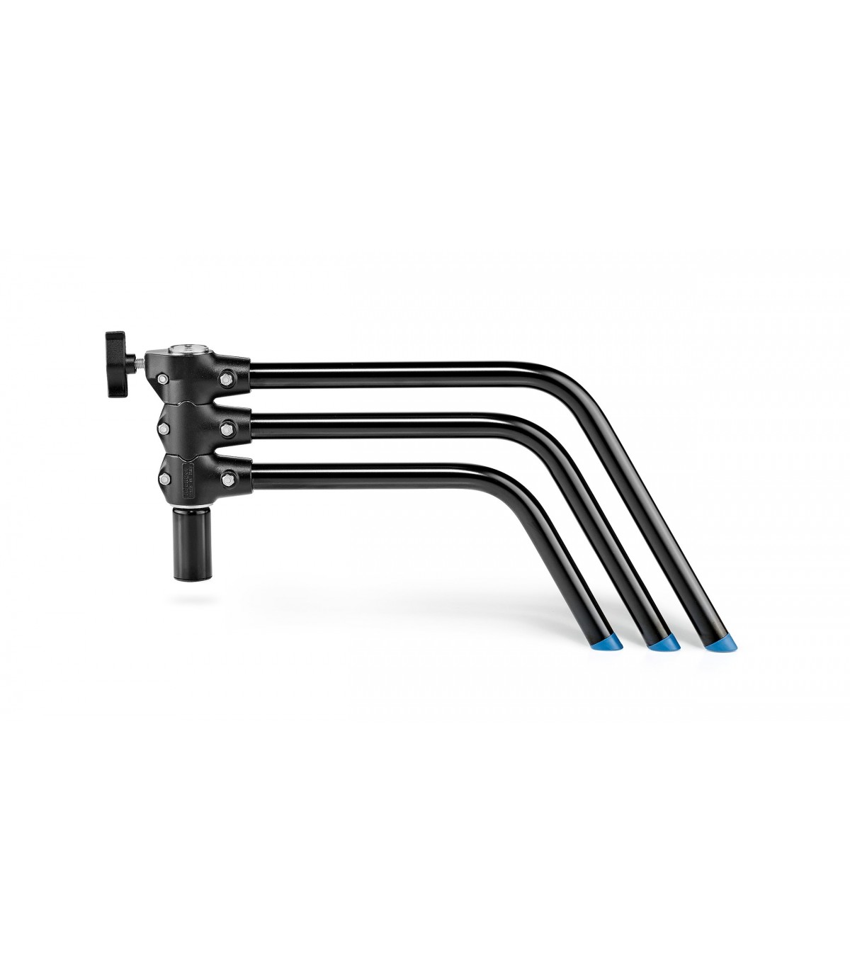 Trípode C-Stand 22 de acero negro con base tortuga DESMONTABLE de Avenger. Base con manguito 29mm y columna con espárrago 16mm. También conocido como trípode Century o Ceferino. Trípode de 3 secciones (2 extensiones). Alturas: con columna máxima 222cm, mínima 110cm, sin columna 27cm, plegado 110cm. Otras medidas: diámetro huella 95cm, capacidad 10kg, peso 5,9kg. Avenger es la marca de referencia en la industria del cine. Este es el trípode Century menos popular utilizado con brazos y rótulas ceferino para sujetar banderas y hollywoods; también sirve para focos pequeños en la columna o un poco mayores en la base tortuga. *Se recomienda poner sacos de contrapeso en las patas de los trípodes cuando se trabaje con ceferinos y banderas o focos en un extremo.