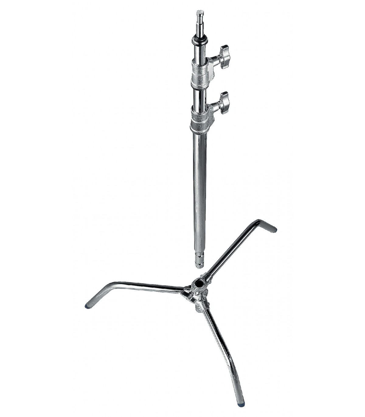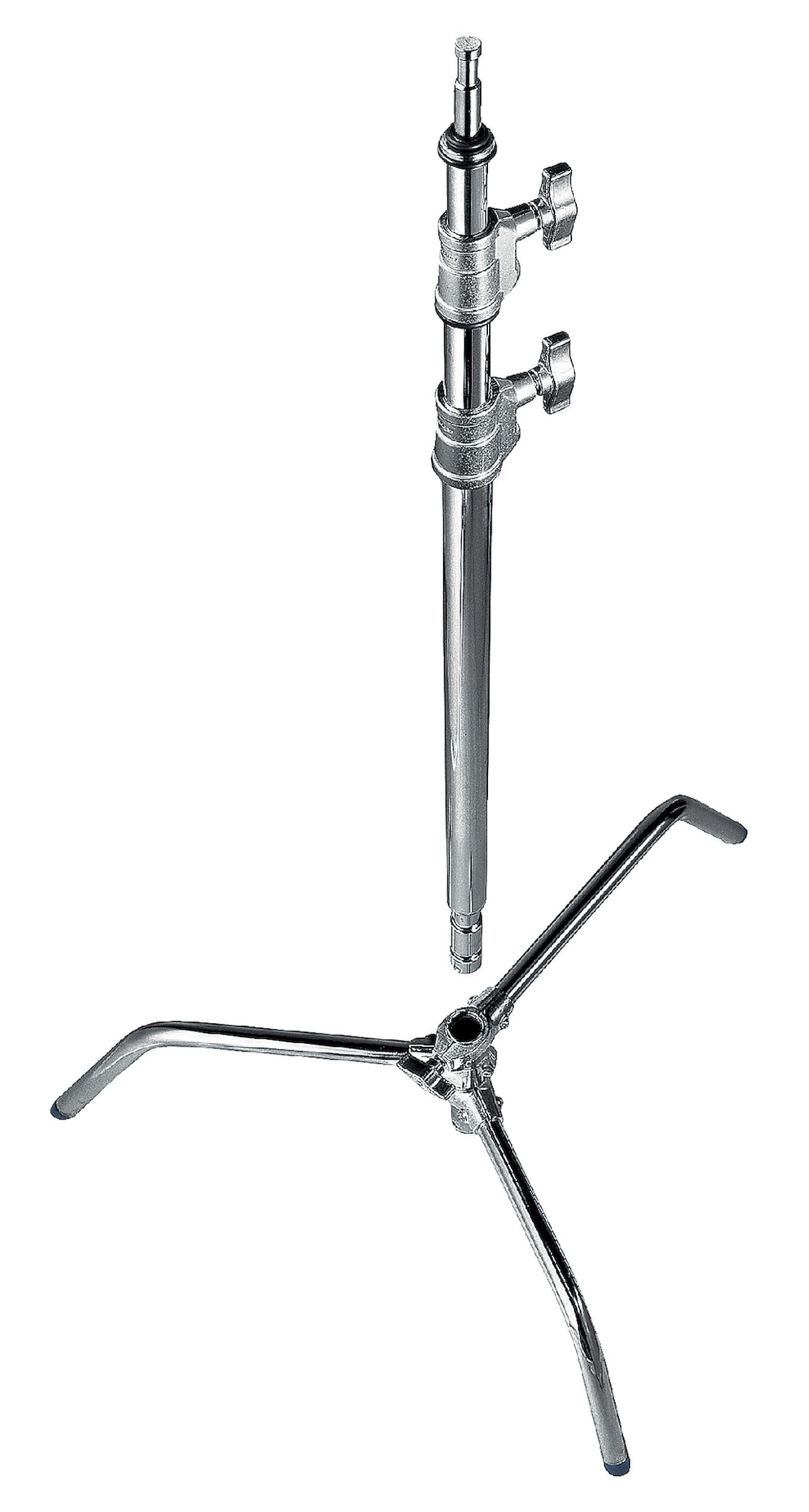 Trípode C-Stand 16 de acero cromado con base tortuga DESMONTABLE de Avenger. Base con manguito 29mm y columna con espárrago 16mm. También conocido como trípode Century o Ceferino. Trípode de 3 secciones (2 extensiones). Alturas: con columna máxima 155cm, mínima 84cm, sin columna 27cm, plegado 84cm. Otras medidas: diámetro huella 95cm, capacidad 10kg, peso 5,6kg. Avenger es la marca de referencia en la industria del cine. Este es el trípode bajo más popular utilizado con brazos y rótulas ceferino para sujetar banderas y hollywoods; también sirve para focos pequeños en la columna o un poco mayores en la base tortuga. *Se recomienda poner sacos de contrapeso en las patas de los trípodes cuando se trabaje con ceferinos y banderas o focos en un extremo.