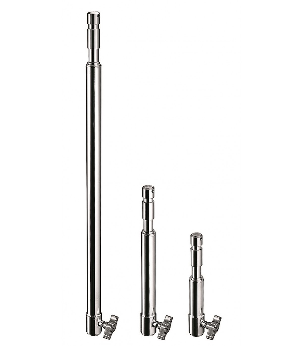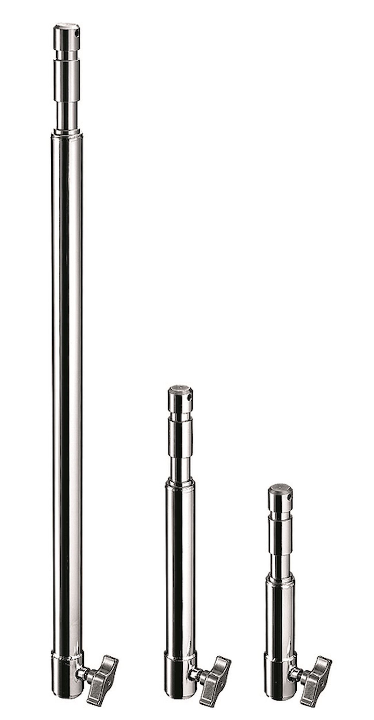 Conka Bonka, juego de 3 columnas o extensiones para trípode de acero cromado con manguito 29mm arriba y espárrago 29mm abajo. NO incluye base. Extensiones fijas de 15cm 1,09kg, 27cm 1,25kg y 68cm 1,75kg. Indicado tanto para bases como para extención de otros trípodes.