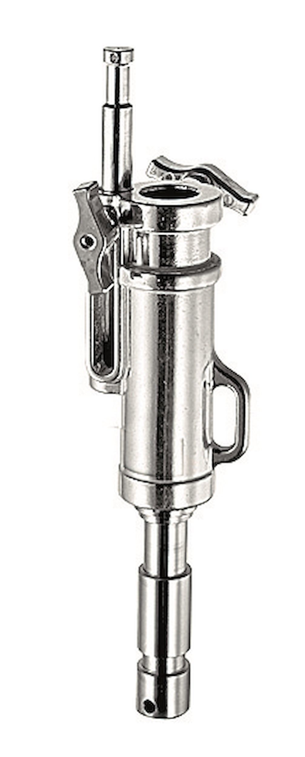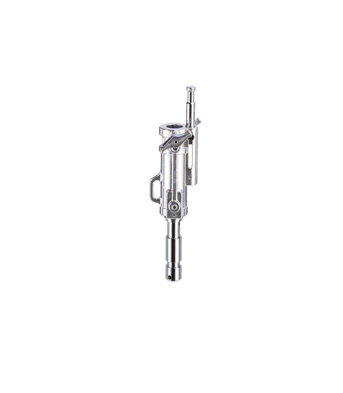 Columna trípode de acero cromado con cabeza universal (manguito 29mm y espárrago 16mm) arriba y espárrago 29mm abajo. NO incluye base. Extensión fija de 28cm; peso 1,59kg. Indicado tanto para bases como para extención de otros trípodes.