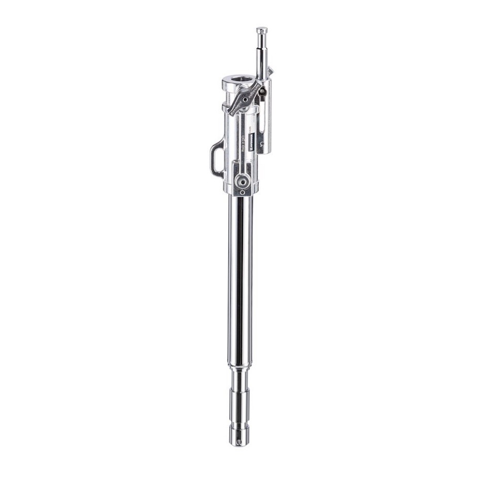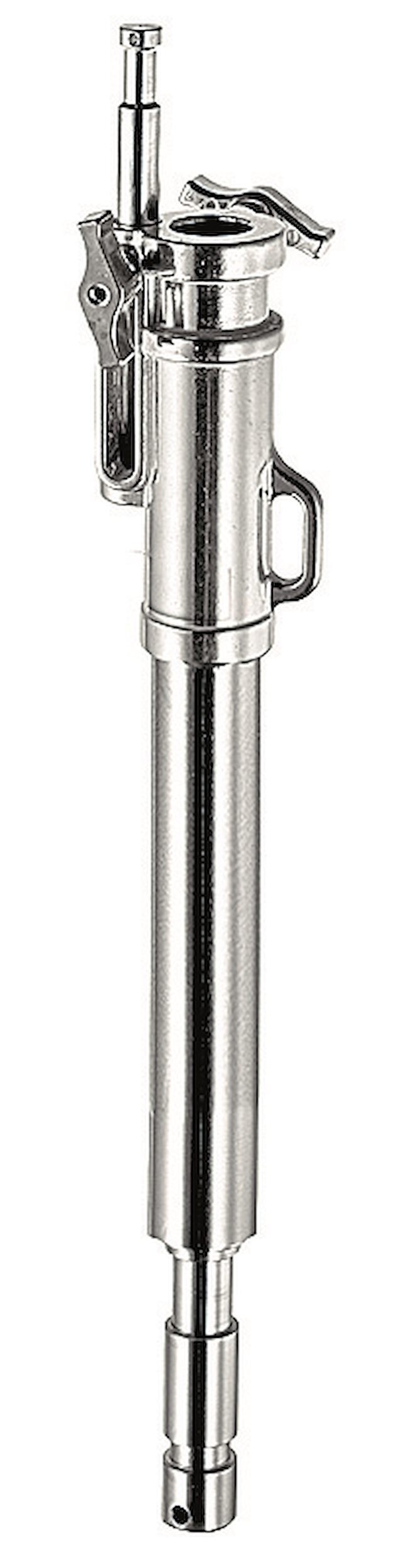 Columna trípode de acero cromado con cabeza universal (manguito 29mm y espárrago 16mm) arriba y espárrago 29mm abajo. NO incluye base. Extensión fija de 52cm; peso 1,89kg. Indicado tanto para bases como para extención de otros trípodes.