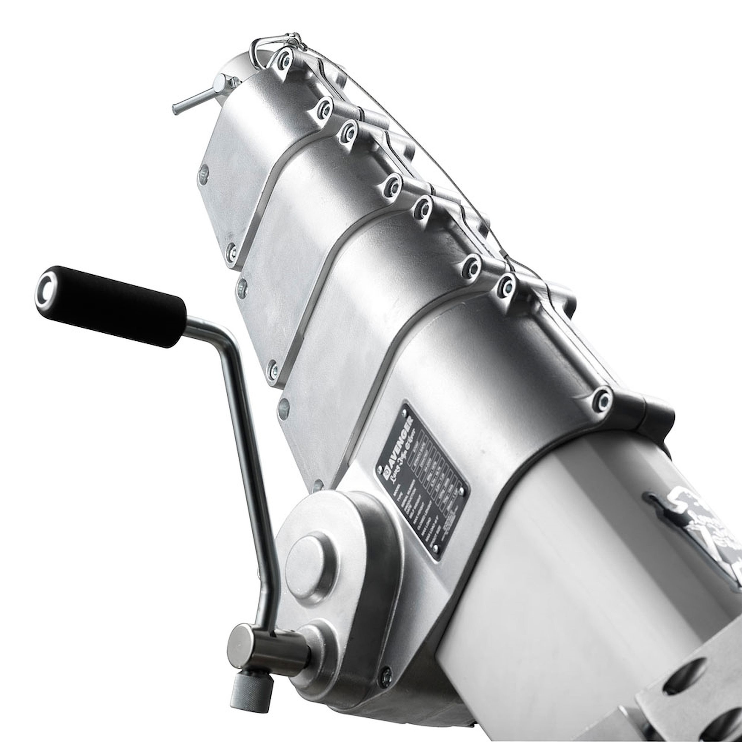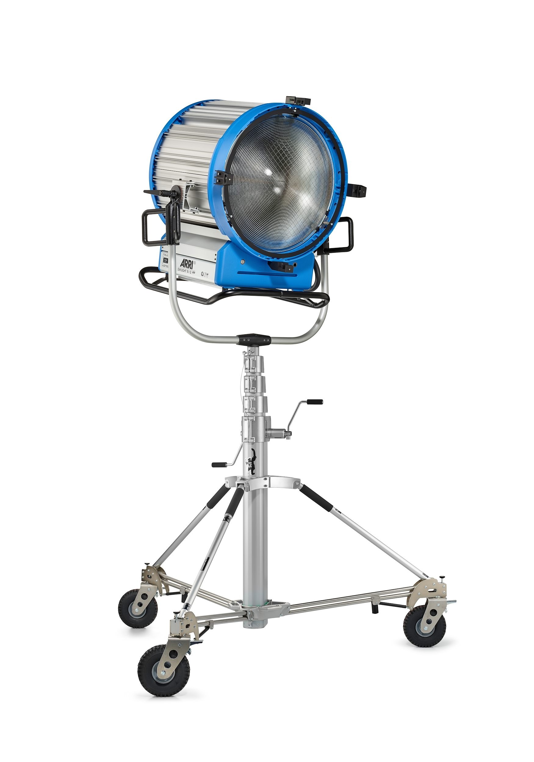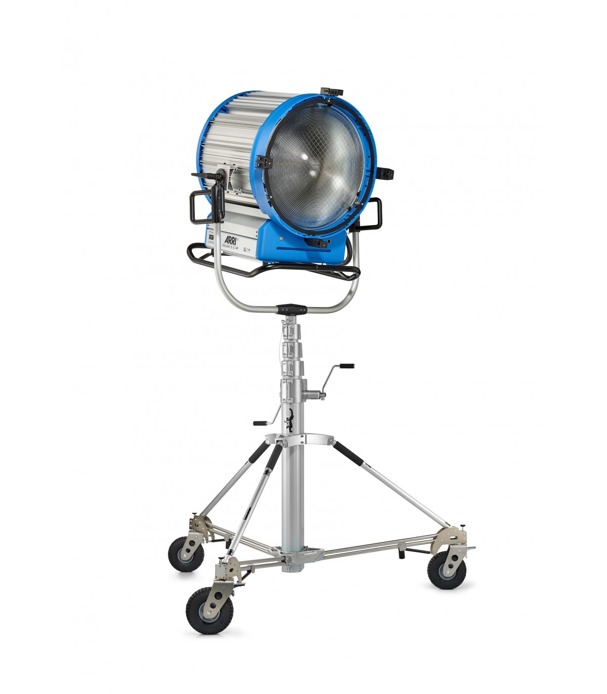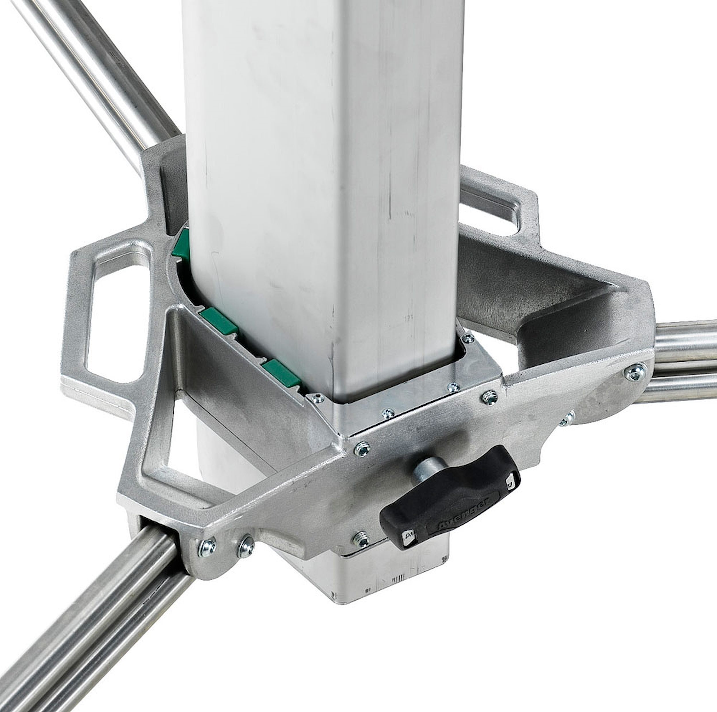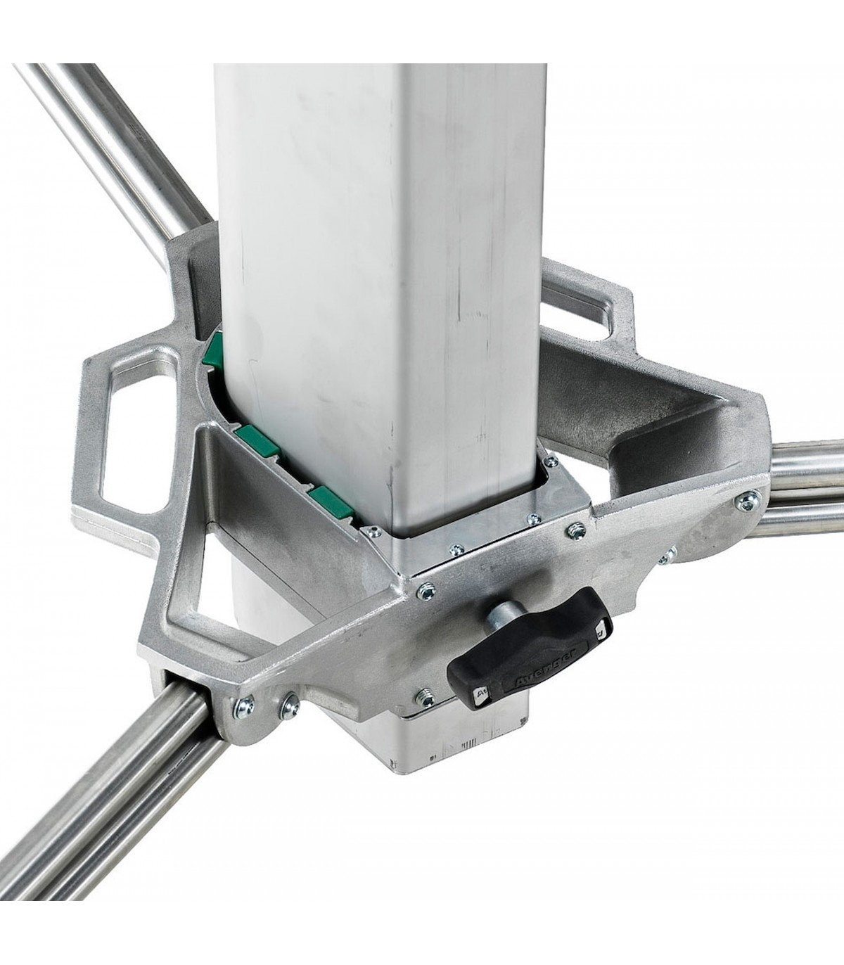 Trípode Long John Silver 570cm cremallera de acero cromado, con manguito 29mm, de Avenger. También conocido como trípode Pirata grande. Trípode de 5 secciones (4 extensiones). CON ruedas foam con freno. Alturas: máxima 570cm, mínima 177cm, plegado 224cm. Otras medidas: diámetro huella 240cm, capacidad 120kg, peso 85kg. Es el mayor de los trípodes con una capacidad de carga de 120kg. Indicado para exteriores con proyectores muy muy pesados.
