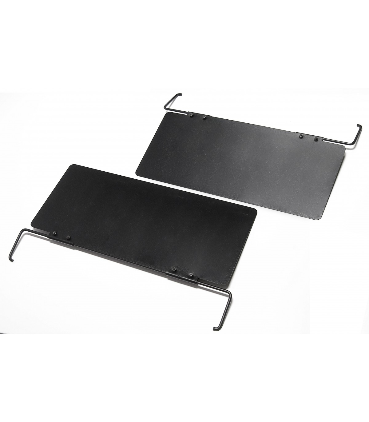Visera 2 hojas horizontales independientes para los CYC (compatibles con todos los modelos Cyc) de Velvet. Las viseras de chapa de acero pintadas en epoxi negro mate sirven para recortar el haz y evitar luz parásita por arriba y/o por abajo del aparato.