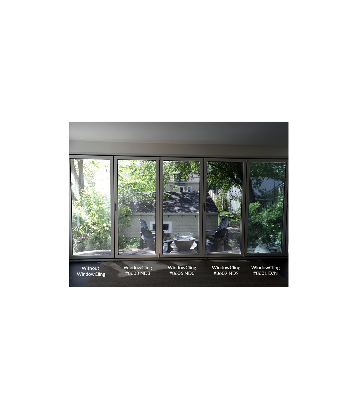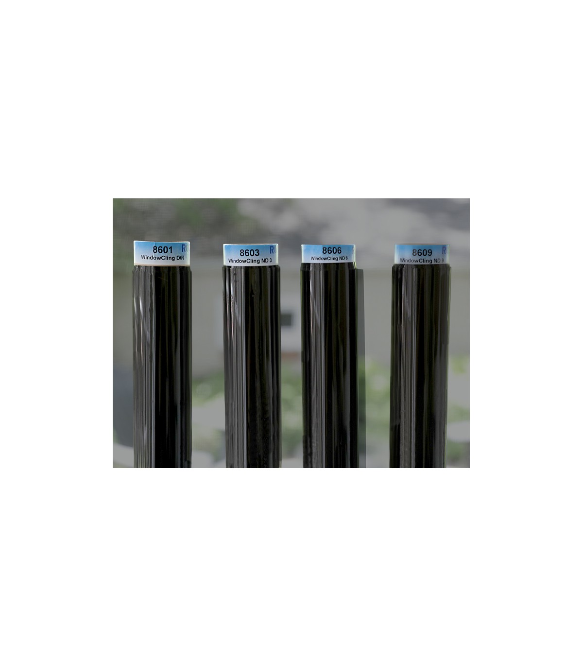 Filtro WindowCling 6ND, de 762x152cm, de Rosco. Filtro ultrafino que se adhiere rápidamente a los cristales mediante electricidad estática, para atenuar la luz de la ventana de una escena.